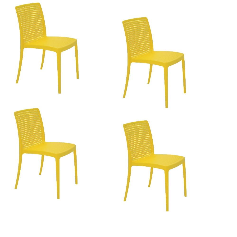 Conjunto de 4 Cadeiras Plásticas Tramontina Joana em Polipropileno e Fibra de Vidro Amarelo
