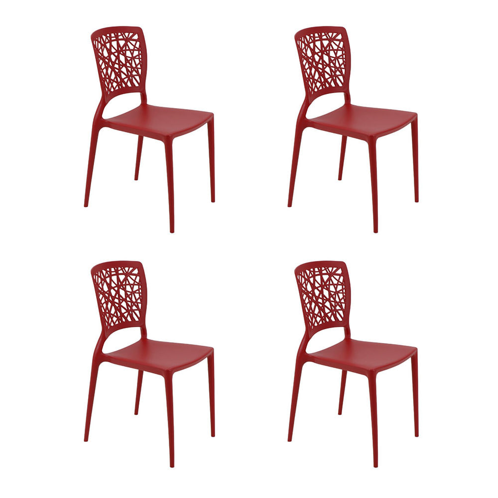 Conjunto de 4 Cadeiras Tramontina Gabriela Fibra de Vidro Vermelho