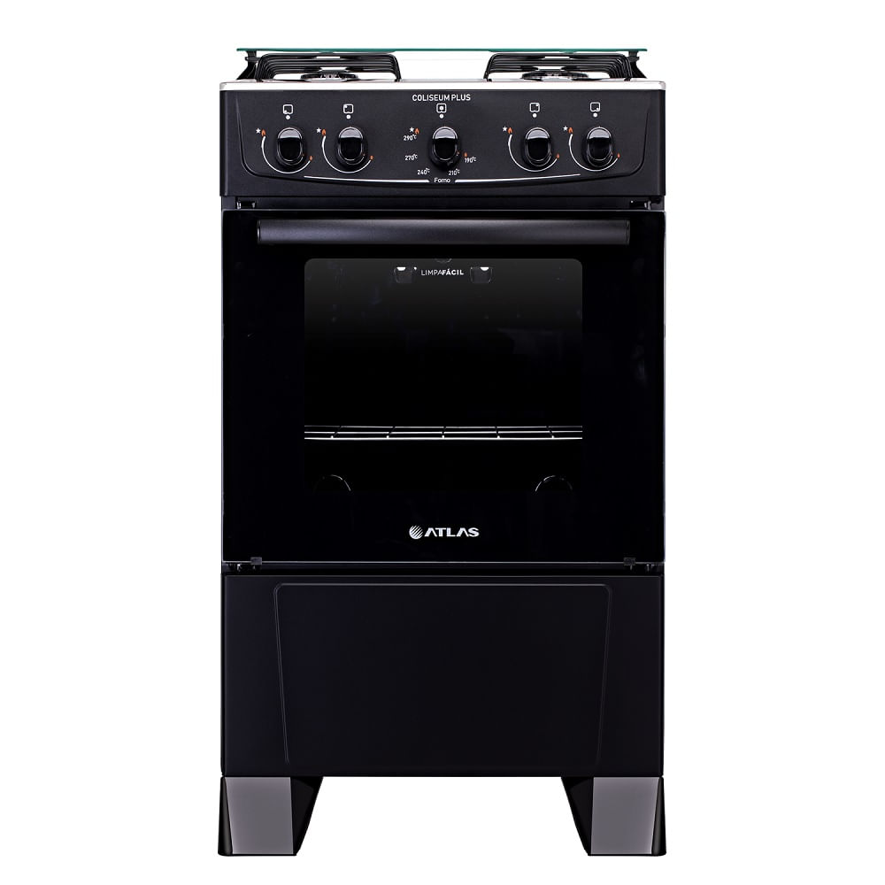 Fogão de Piso Atlas 4 Bocas Com Mesa Inox Coliseum Plus Preto