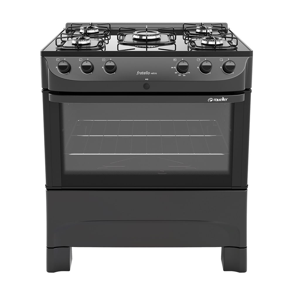 Fogão de Piso Mueller 5 Bocas Fratello Vetro com Mesa de Vidro Preto – Bivolt