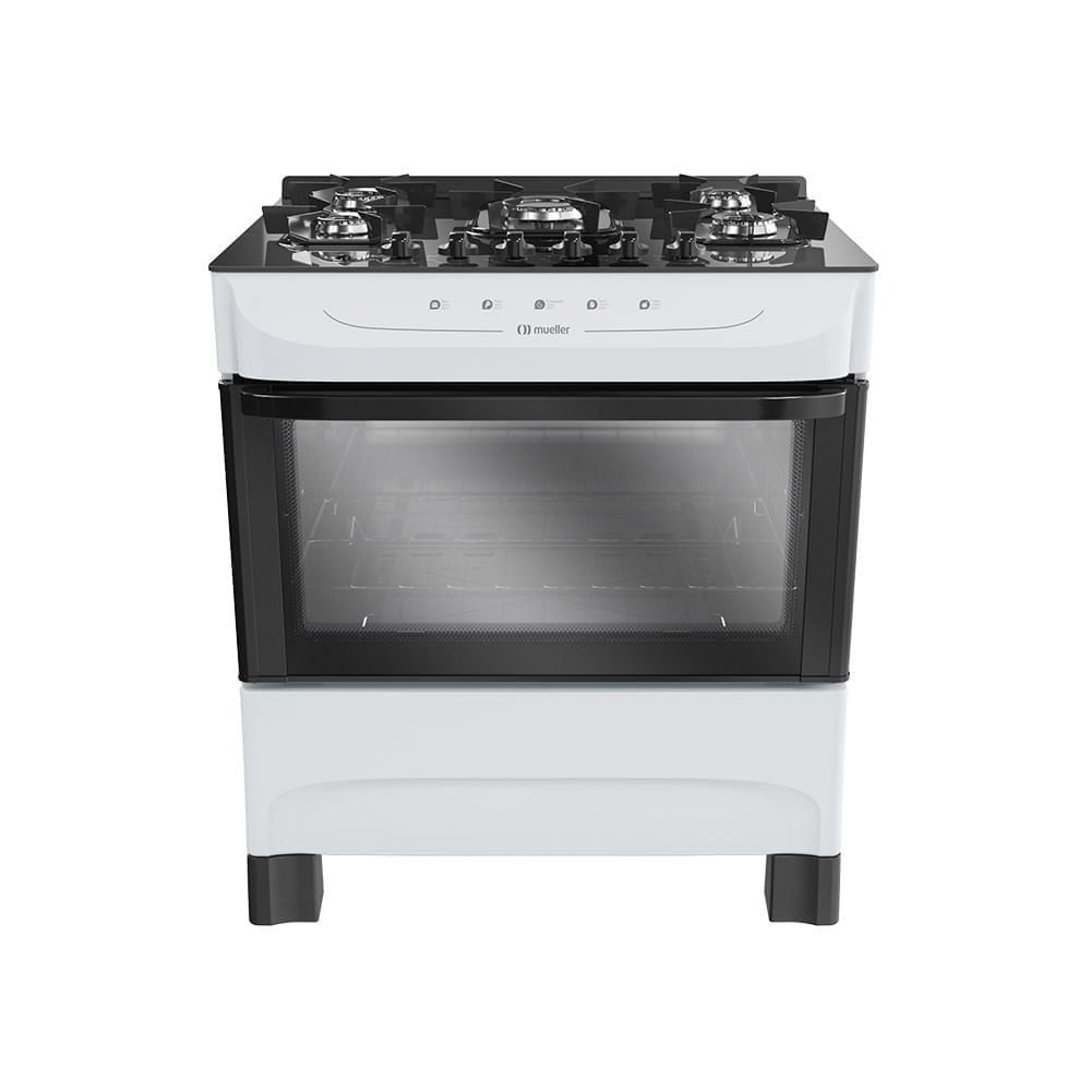 Fogão De Piso Mueller 5 Bocas Mesa De Vidro Branco MFV5BB – Bivolt