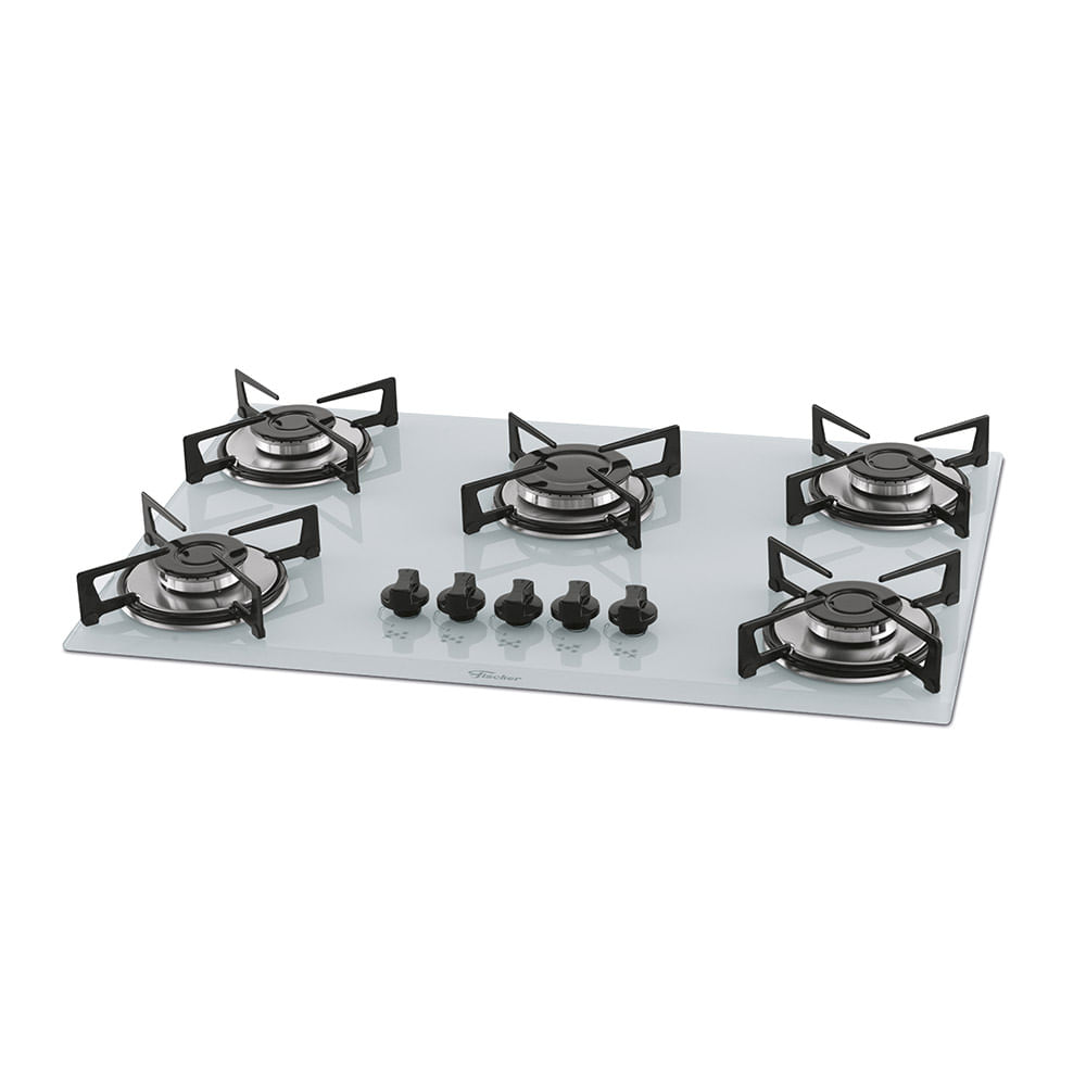 Cooktop a Gás Fischer 5 Bocas Mesa de Vidro Branco – Bivolt