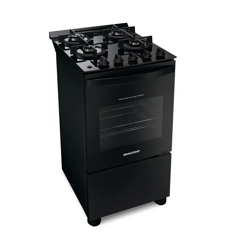 Fogão de Piso Brastemp 4 Bocas com mesa de vidro e grades duplas de ferro fundido Preto – BFO4VAE – Bivolt