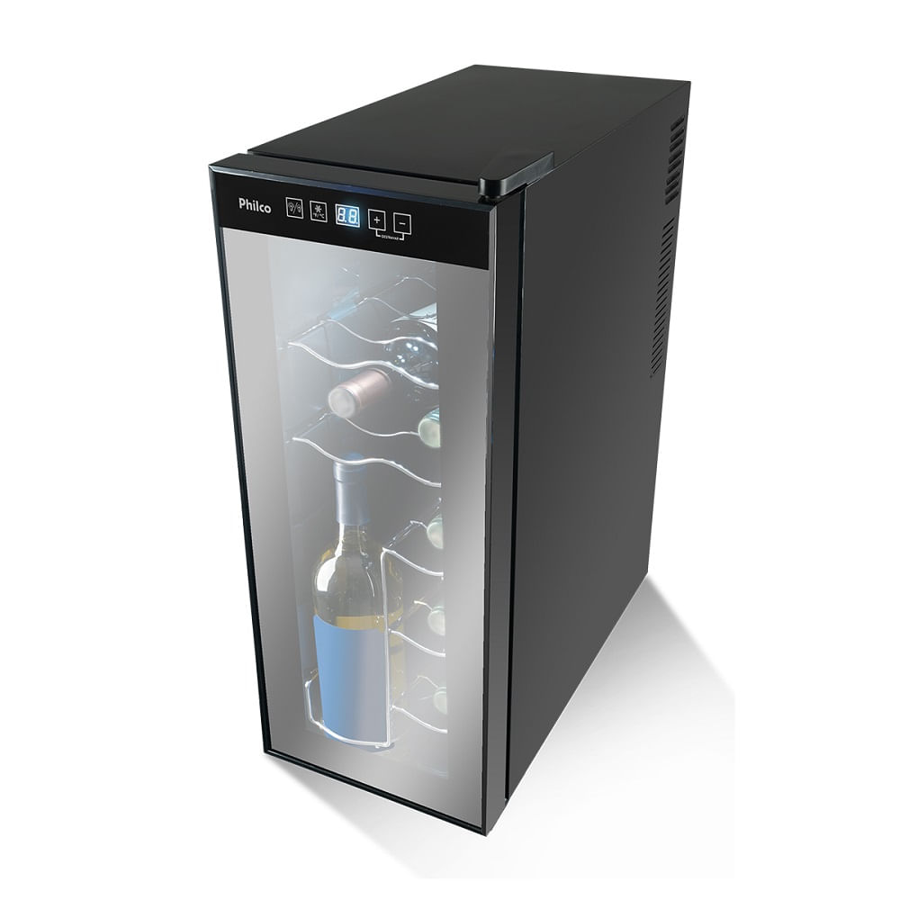 A Adega Philco 12 Garrafas com Display Digital Preta PAD12E – Bivolt mantem suas garrafas de vinho armazenadas na melhor temperatura, conservando aromas, sabores e tendo muito mais facilidade.
