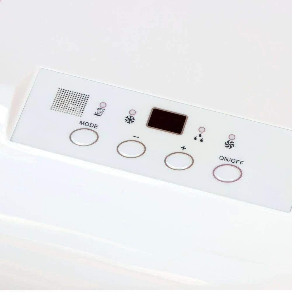 Modo Fan o condicionador de ar somente emitirá vento. Possui painel de controle, aleta direcionadora, rodas e suporte do controle.