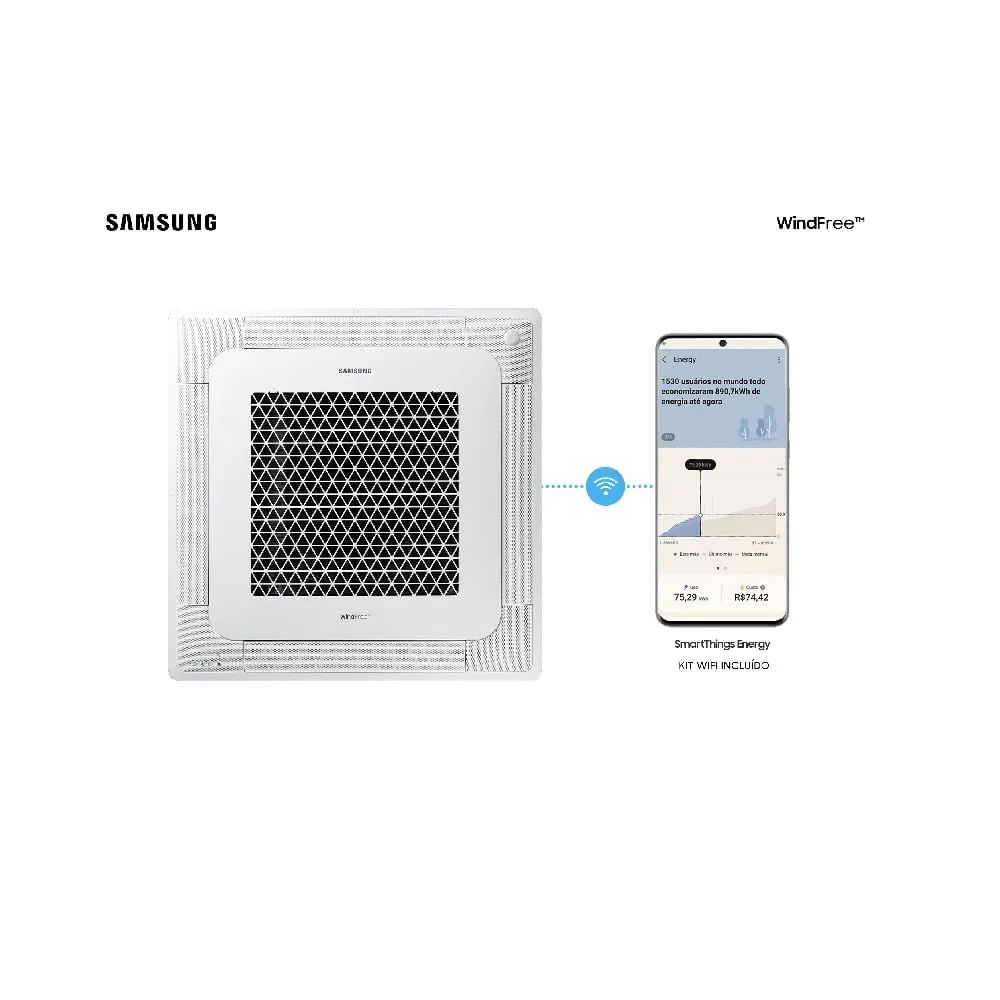 Com o simples toque de um botão, o modo WindFree dispersa o ar climatizado através de 15.700 microfuros que elimina o vento gelado direto, deixando o ambiente ainda mais confortável. A tecnologia Digital Inverter Samsung entrega alta performance. E, além de mais conforto, a operação no modo WindFree™ também traz ainda mais economia de energia, a forma suave de dispersar o fluxo de ar também traz ganhos de eficiência, de modo que o compressor pode trabalhar menos para manter a temperatura ambiente.