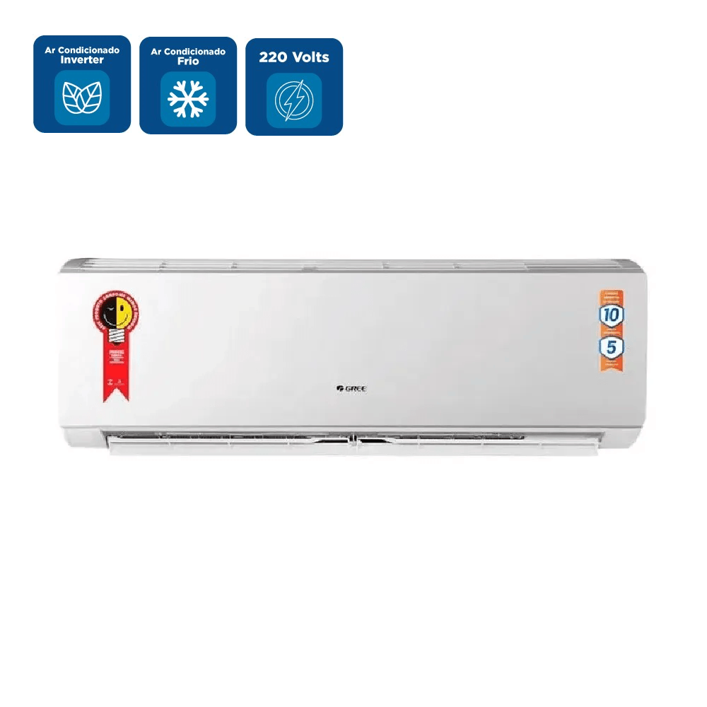 Qualidade GREE em todos os componentes, Painel frontal em Plástico HIPS, resistência mecânica. Chassi reforçado feito em matéria-prima pura. Design que oferece maior resistência. Proteção especial BlueFin na evaporadora, tubo de cobre 15% mais eficiente do que tubos comuns. Mais facilidade na manutenção. Condensadora de descarga vertical, ocupa até 40% menos espaço que as condensadoras convencionais. Sistema multe filtro elimina 99,99% dos vírus e bactérias do ambiente, Filtro de chá verde: Atua como antioxidante, Filtro de íon de prata: Atua diretamente na membrana da célula bacteriana, Filtro antibacteriano: Elimina os vírus e as bactérias e Filtro carvão ativado: Elimina odores do ambiente. Aletas com revestimento especial GoldenFin. Compressor de fabricação própria Gree, Baixo nível de ruído, com 10 anos de garantia, uma das maiores do mercado.