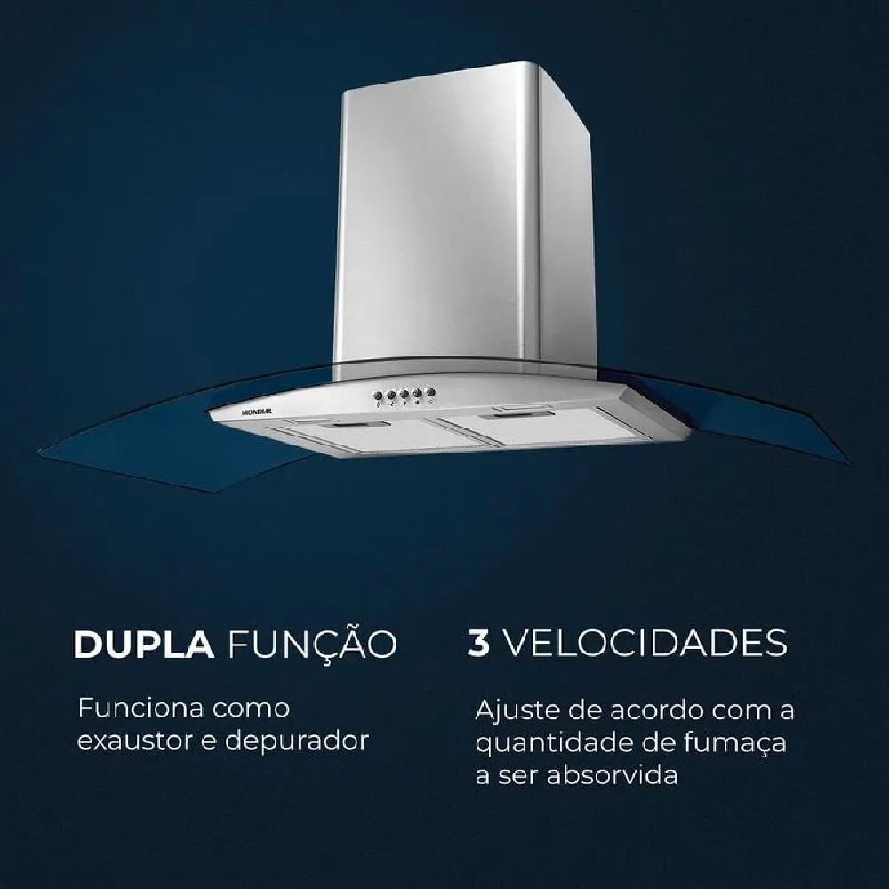 Coifa de Parede Mondial 250W Inox CF90-01 – 127 Volts