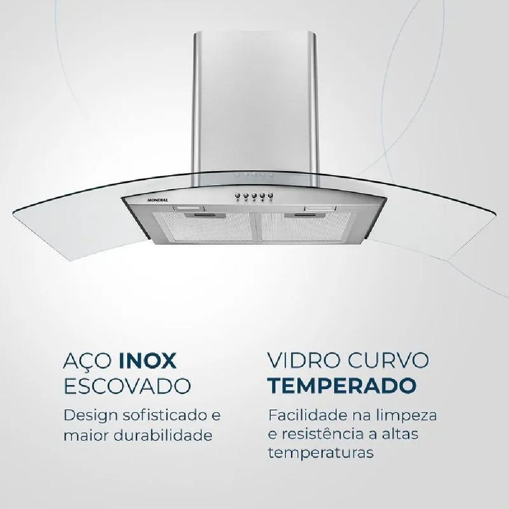 Acabe com fumaça, gordura e vapor na cozinha a Coifa de Parede Mondial 250W Inox CF90-01 – 127 Volts com design moderno e sofisticado, tem dupla função(exaustore depurador ), 3 velocidades, chaminé extensível, 2 lâmpadas led e visual moderno de aço inox escovado, com vidro curvo temperado. Ideal para fogão e cooktop de até 6 bocas. Com suas 3 velocidades ajuste de acordo com a quantidade de fumaça, tendo função de exaustão e depuração – diga adeus à gordura.