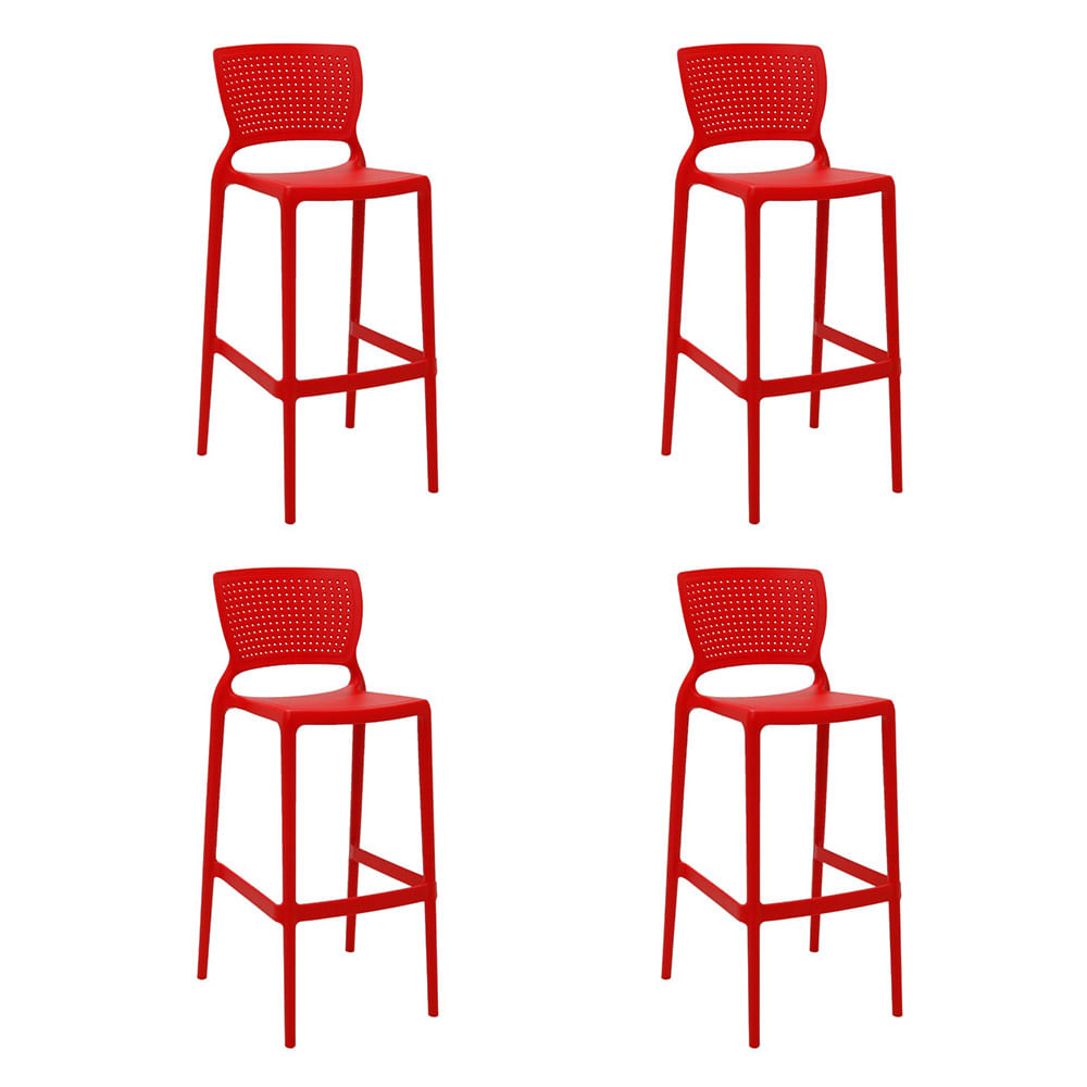 Conjunto de 4 Cadeiras Plásticas Tramontina Safira Alta Bar em Polipropileno e Fibra de Vidro Vermelho