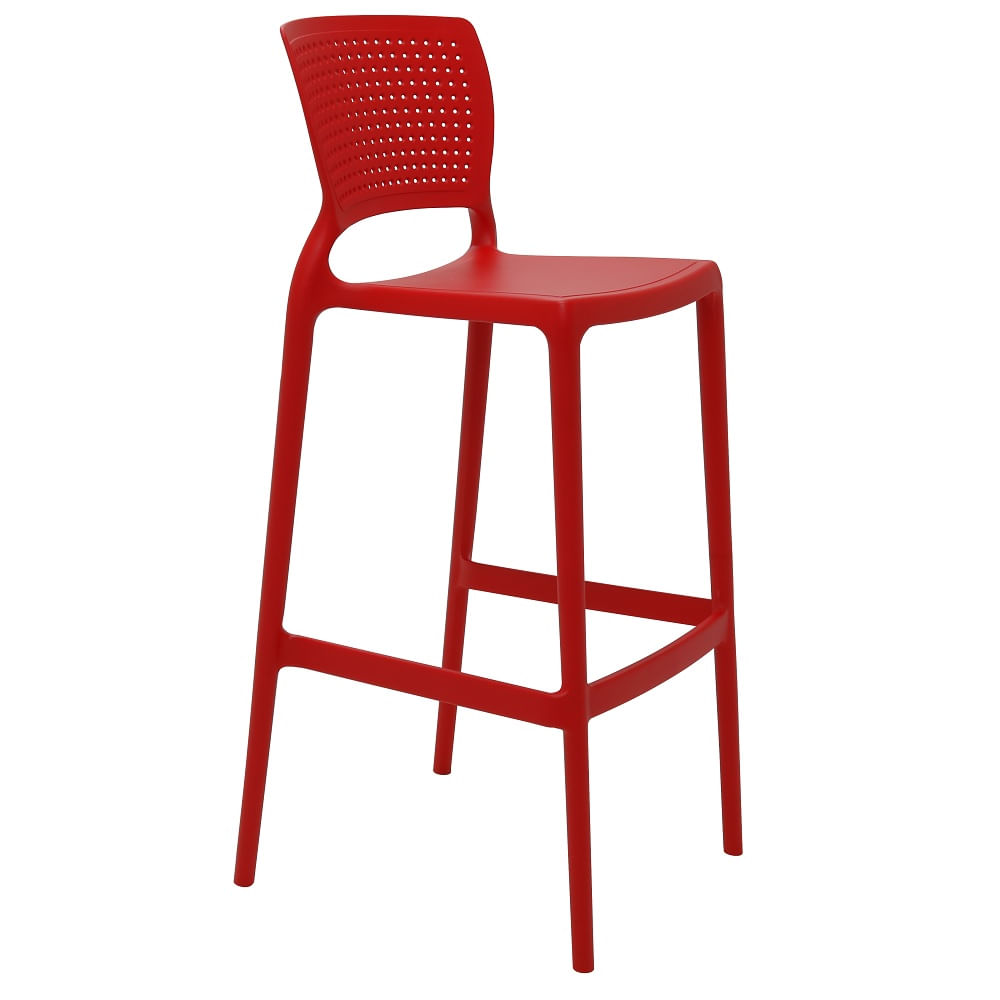 Alta resistência, qualidade e estilo para compor seus ambientes, com a cadeira Tramontina Safira alta bar em polipropileno e fibra de vidro vermelha. Ideal para compor bancadas de cozinhas americanas e bares, ela suporta até 182 quilos e tem design diferenciado, inspirado na pedra Safira, uma das mais lindas e mais conhecidas!