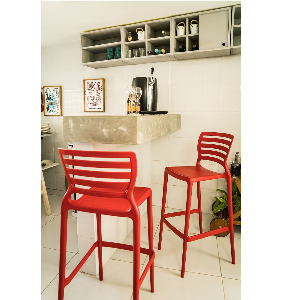 Conjunto de 4 Cadeiras Plásticas Tramontina Sofia Alta Bar em Polipropileno e Fibra de Vidro Vermelho