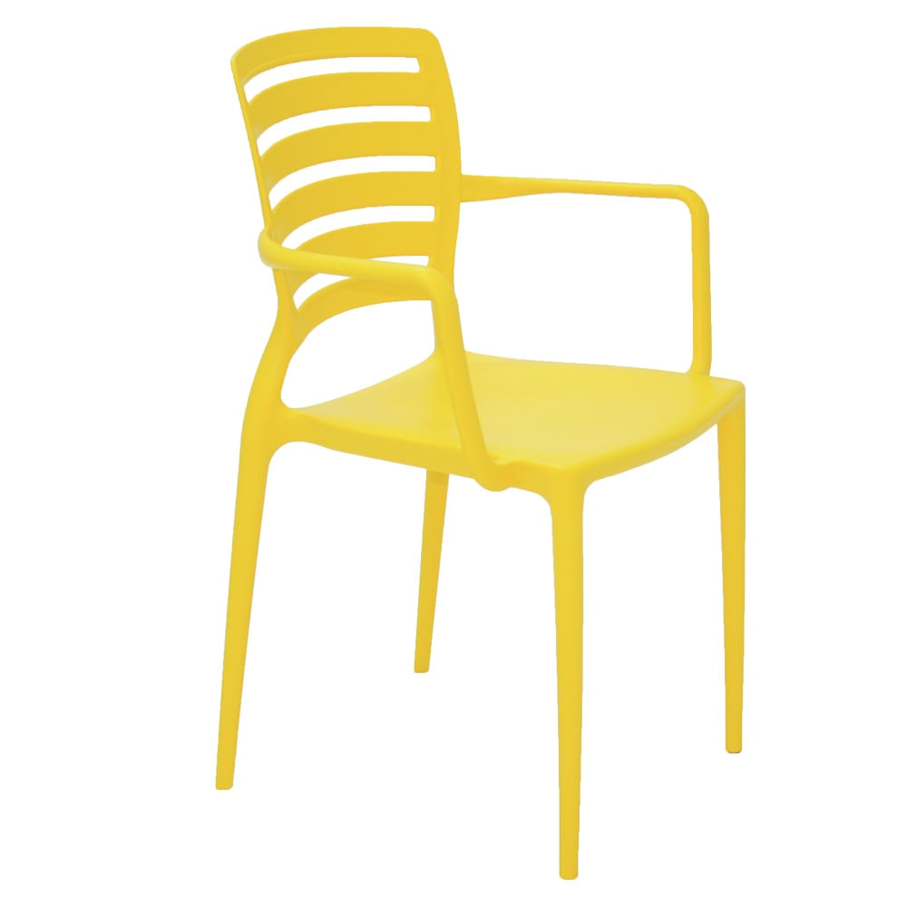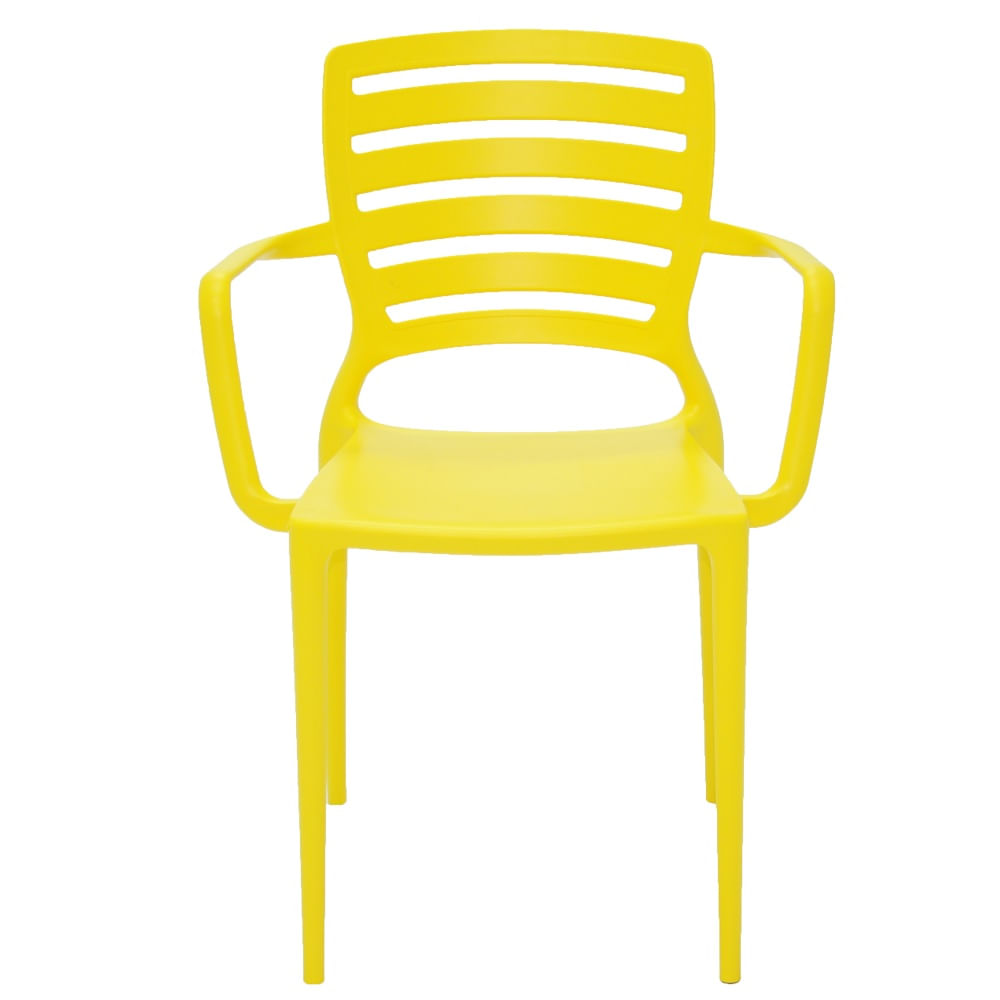 Conjunto de 4 Cadeiras Plásticas Tramontina Sofia com Encosto Horizontal e Braços em Polipropileno e Fibra de Vidro Amarelo