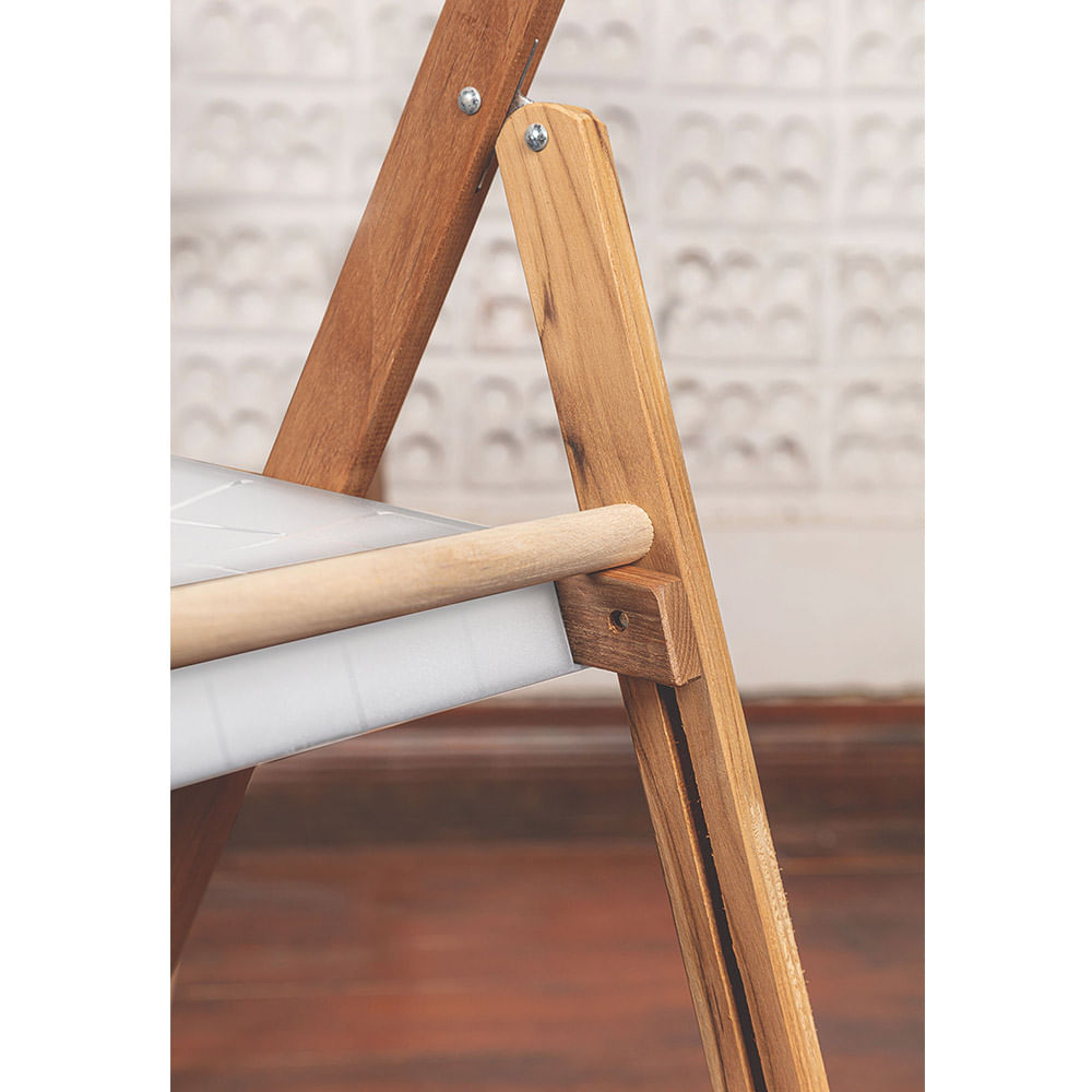 Madeira Itaúba Acabamento natural Lixado Assento e encosto em Polipropileno na cor Branco Dobrável Entregue Montada Suporta até 110 kilos