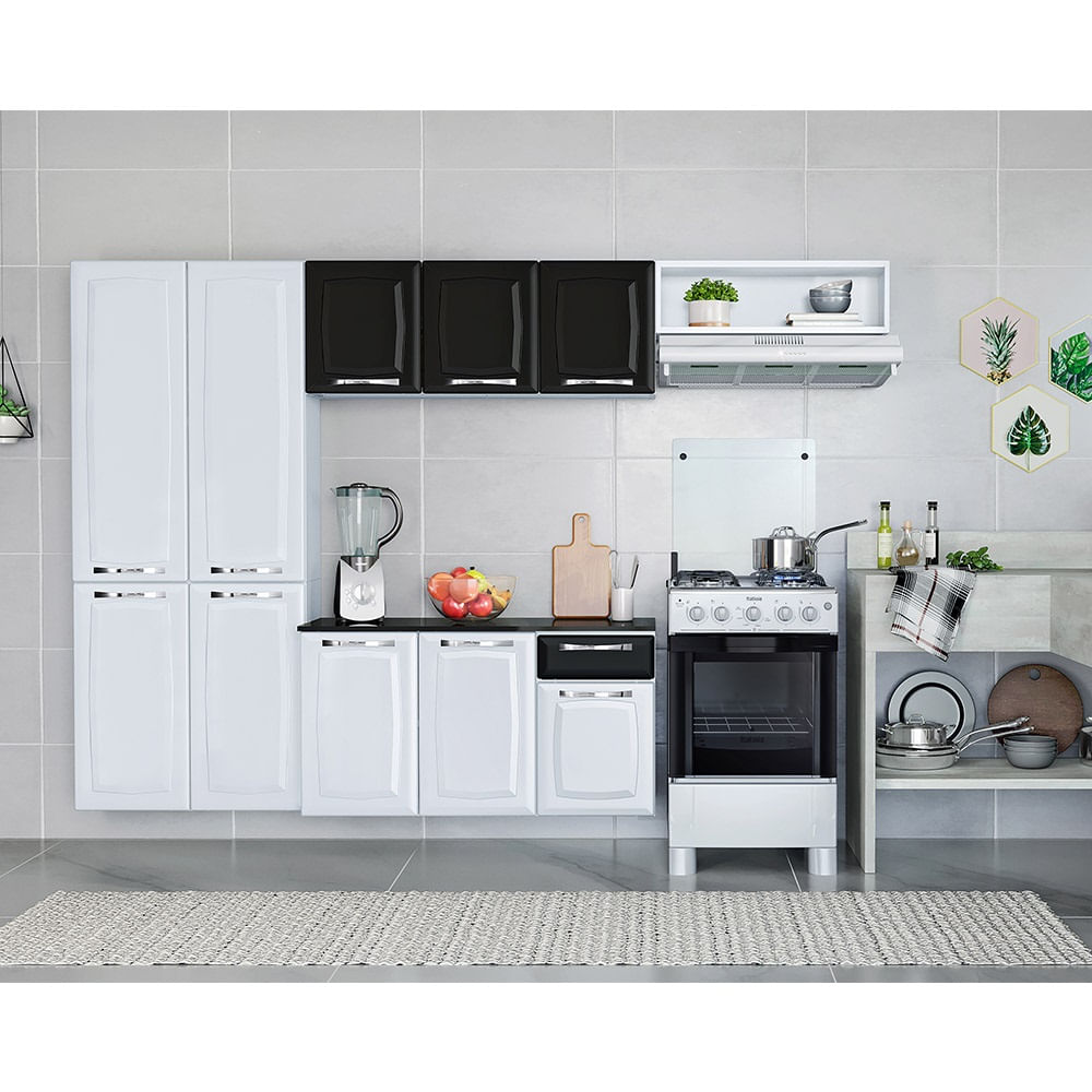 Cozinha Itatiaia Compacta em Aço Amanda 2023 4 Peças Branca e Preta