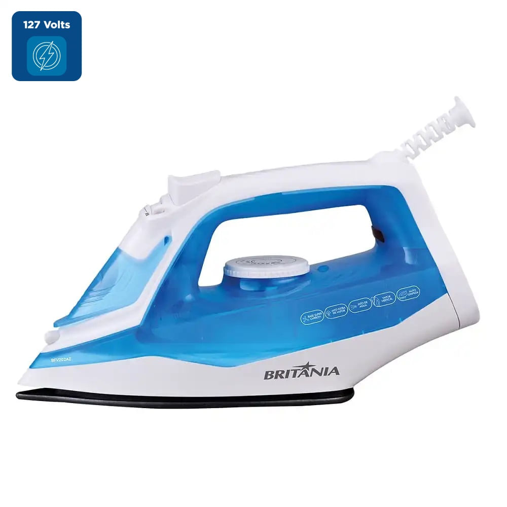 Ferro a Vapor Britânia Base Antiaderente Branco e Azul BFV202AZ – 127 Volts