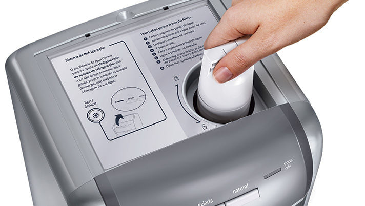 Com tecnologia exclusiva, através de diferentes estágios de filtragem e do carvão ativado, garante água sempre pura, livre de qualquer cor, sabor e até mesmo cloro e bactérias.