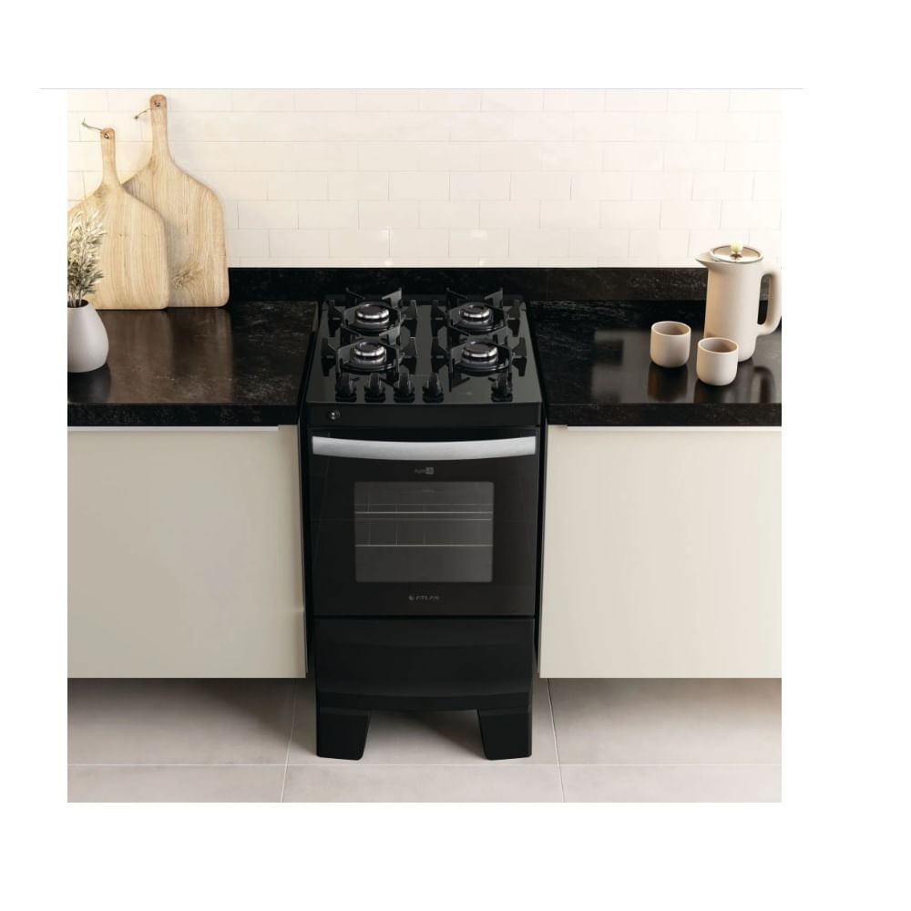 Fogão de Piso Atlas 4 Bocas com Mesa de Vidro Agile Up Glass Preto – Bivolt
