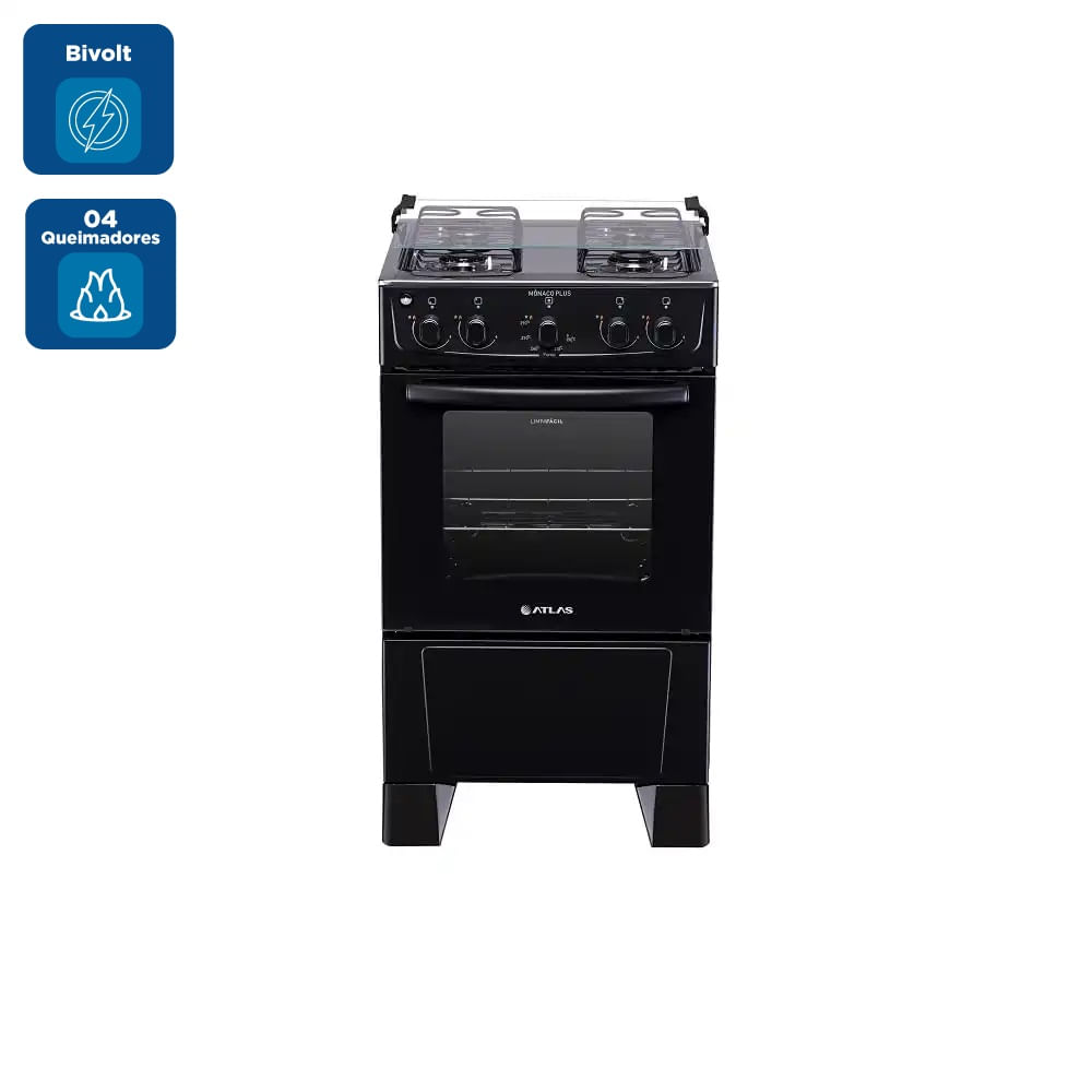 Fogão De Piso Atlas Monaco Plus 4 Bocas Preto – Bivolt