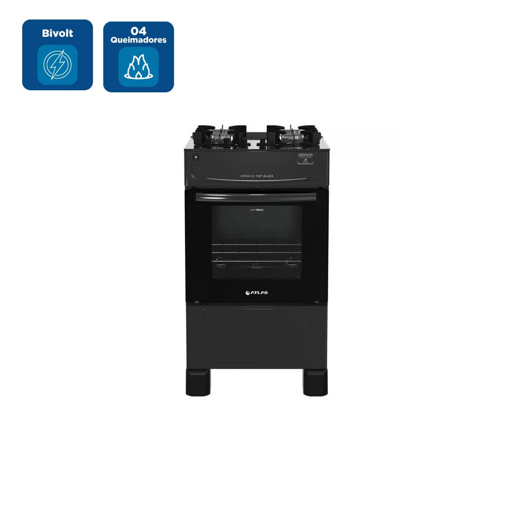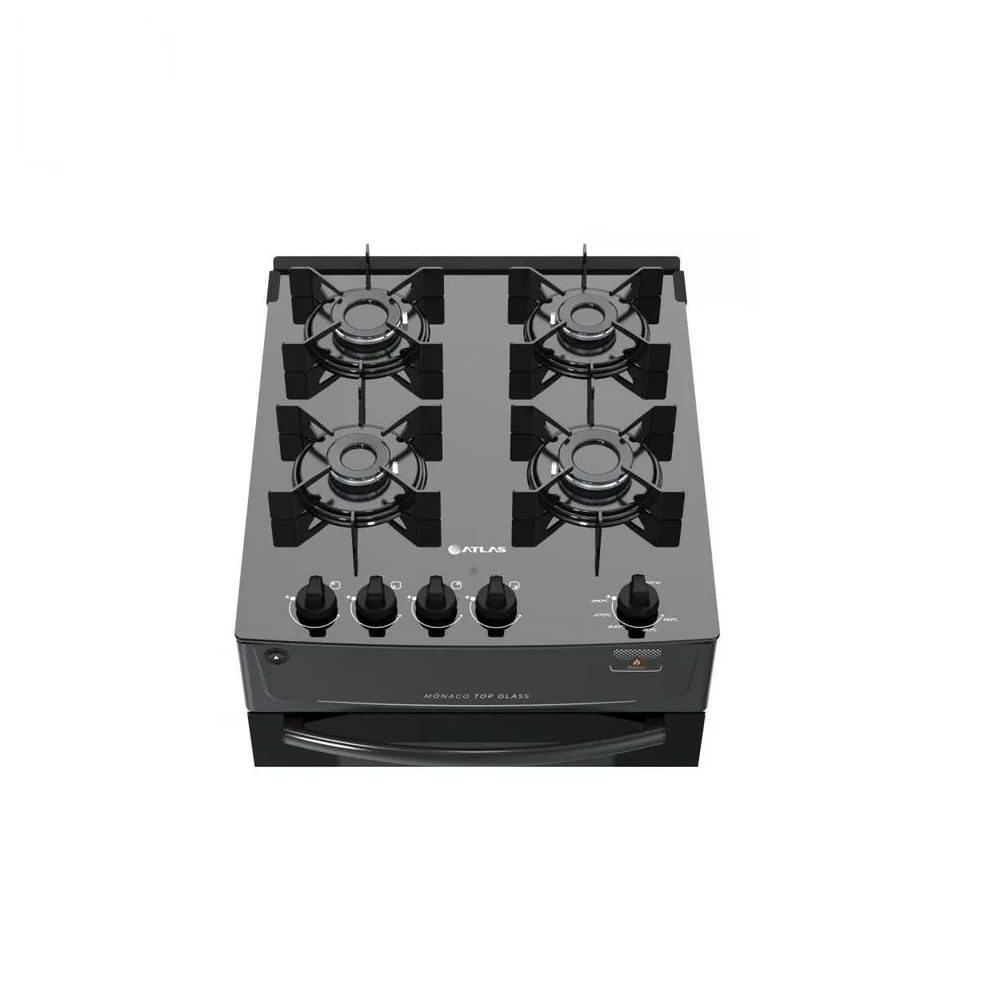 Fogão de Piso Atlas Mônaco Top Glass 4 Bocas Preto – Bivolt