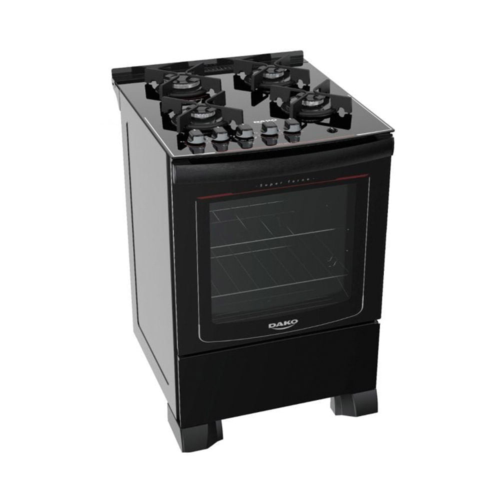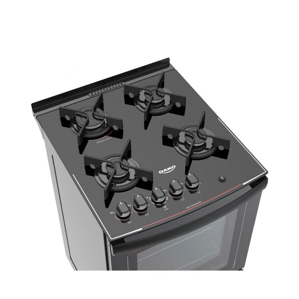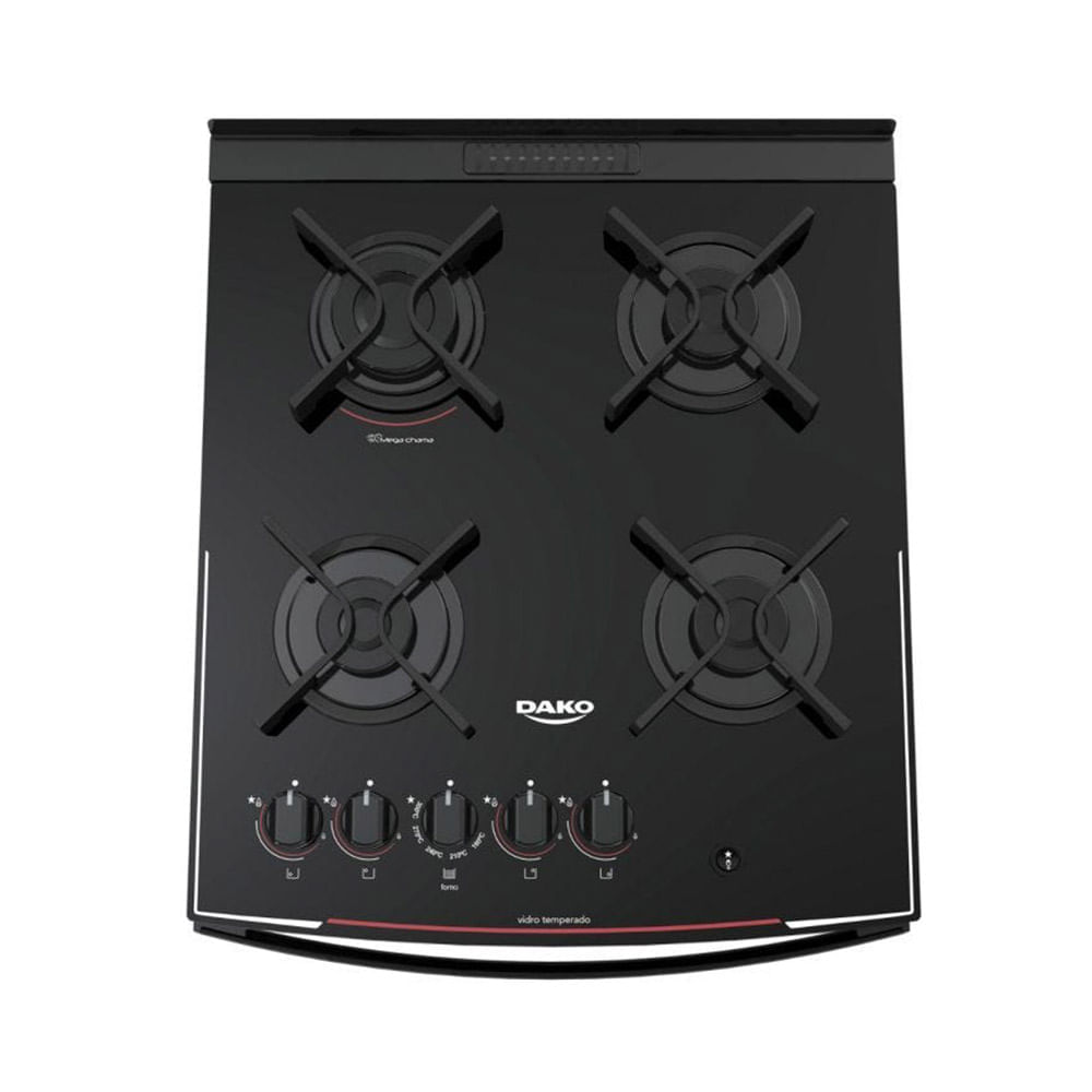 Fogão de Piso Dako 4 Bocas Glass com Mesa de Vidro e Mega Chama Preto – Bivolt
