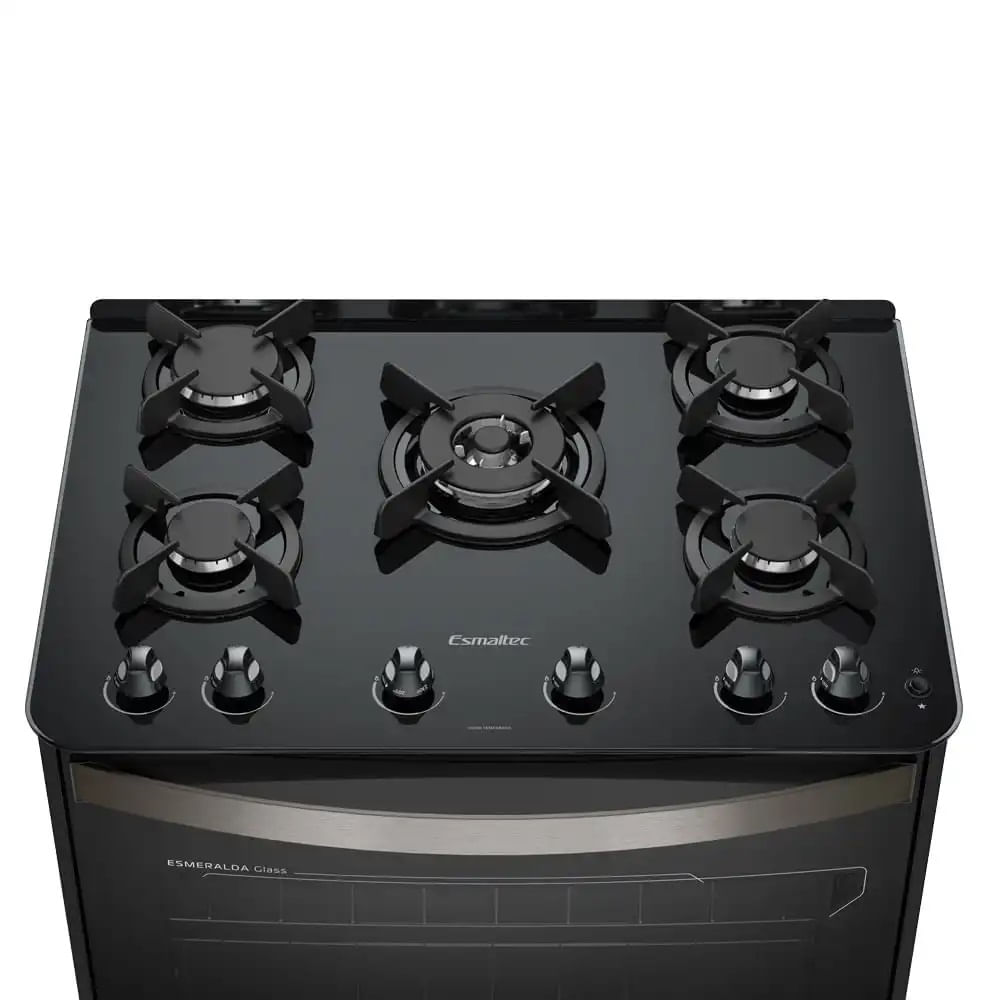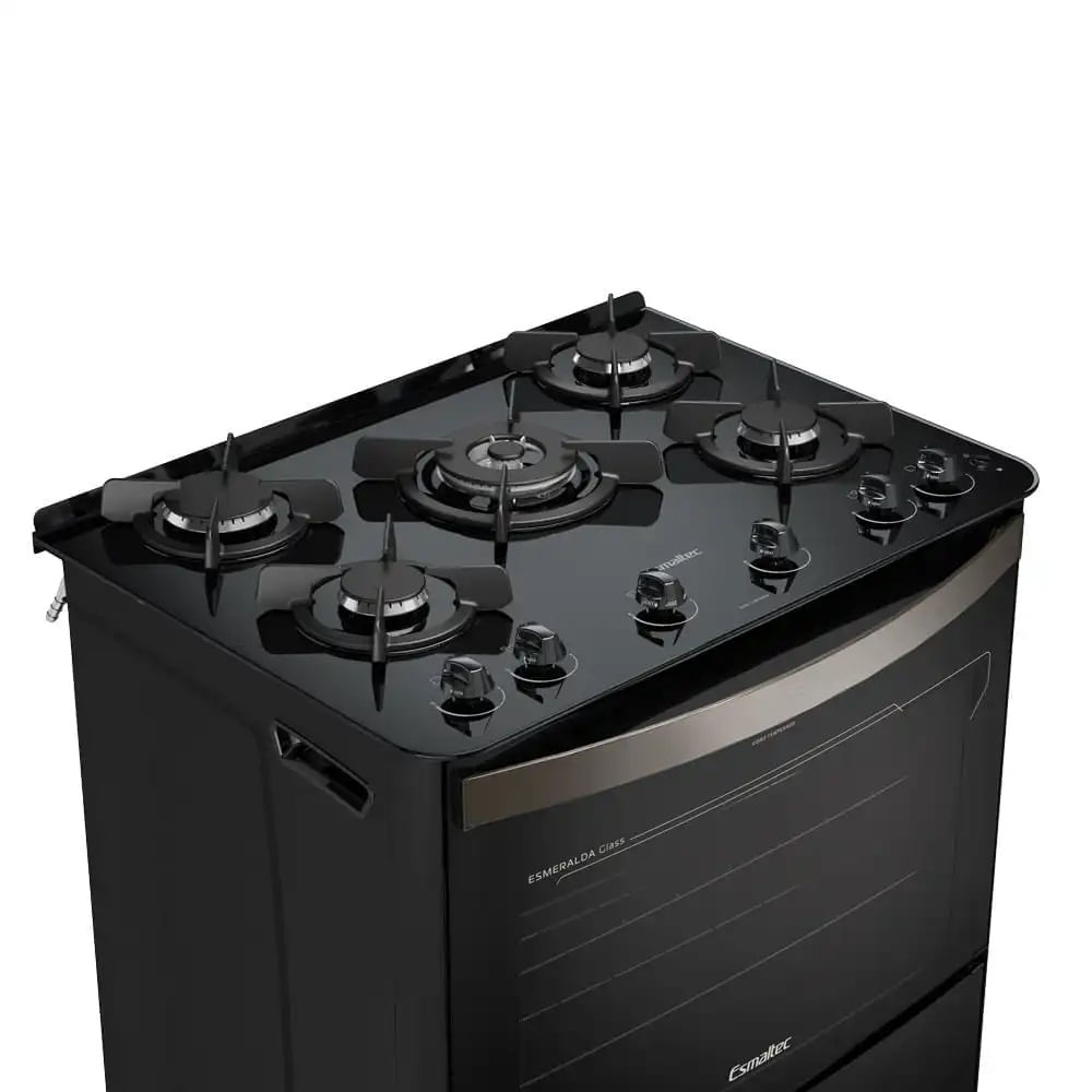 O Fogão Esmaltec 5 Bocas Esmeralda Glass Preto – Bivolt, possui:
