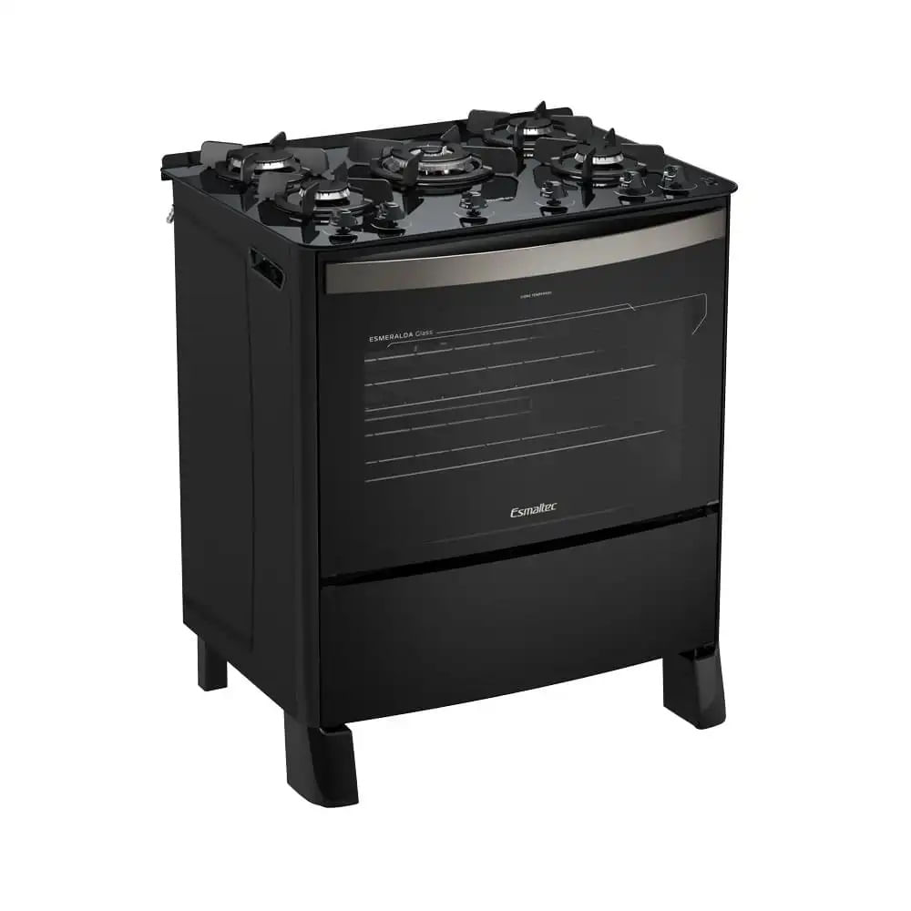 Fogão de Piso Esmaltec 5 Bocas Esmeralda Glass Preto – Bivolt