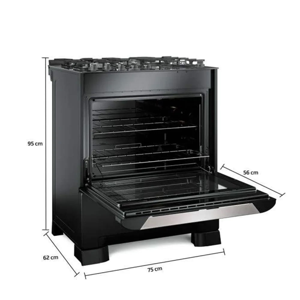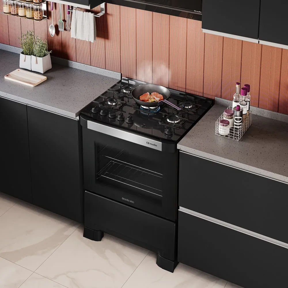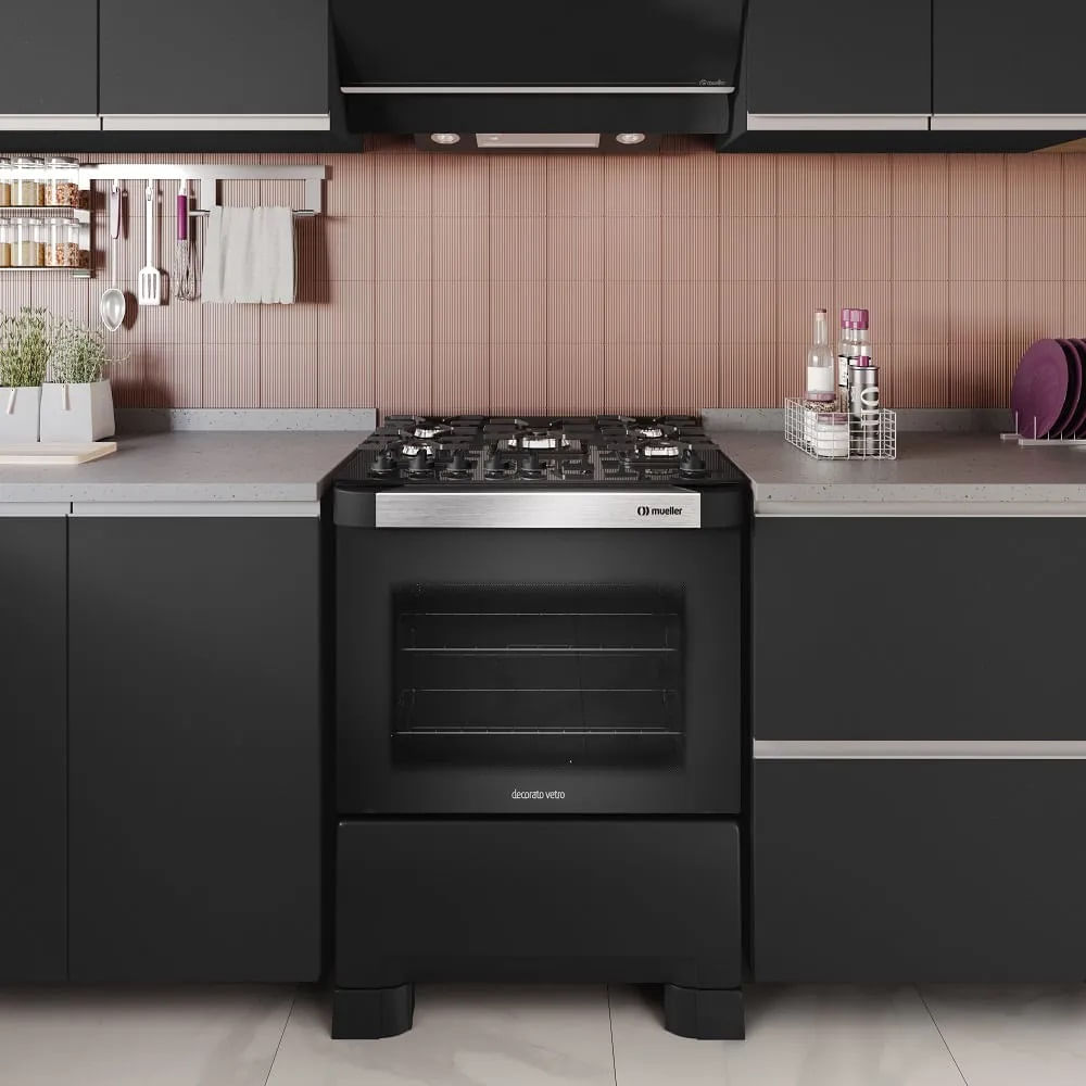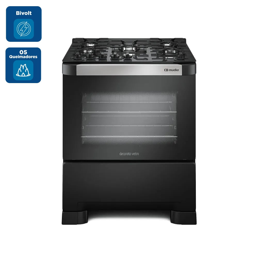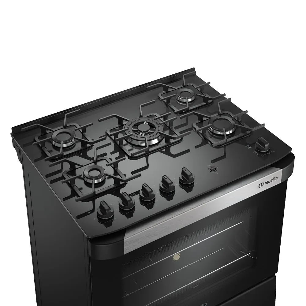 Fogão de Piso Mueller 5 Bocas Decorato Vetro Preto – Bivolt