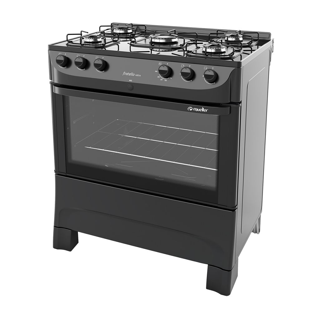 O Fogão Mueller 5 Bocas Fratello Vetro com Mesa de Vidro Preto – Bivolt