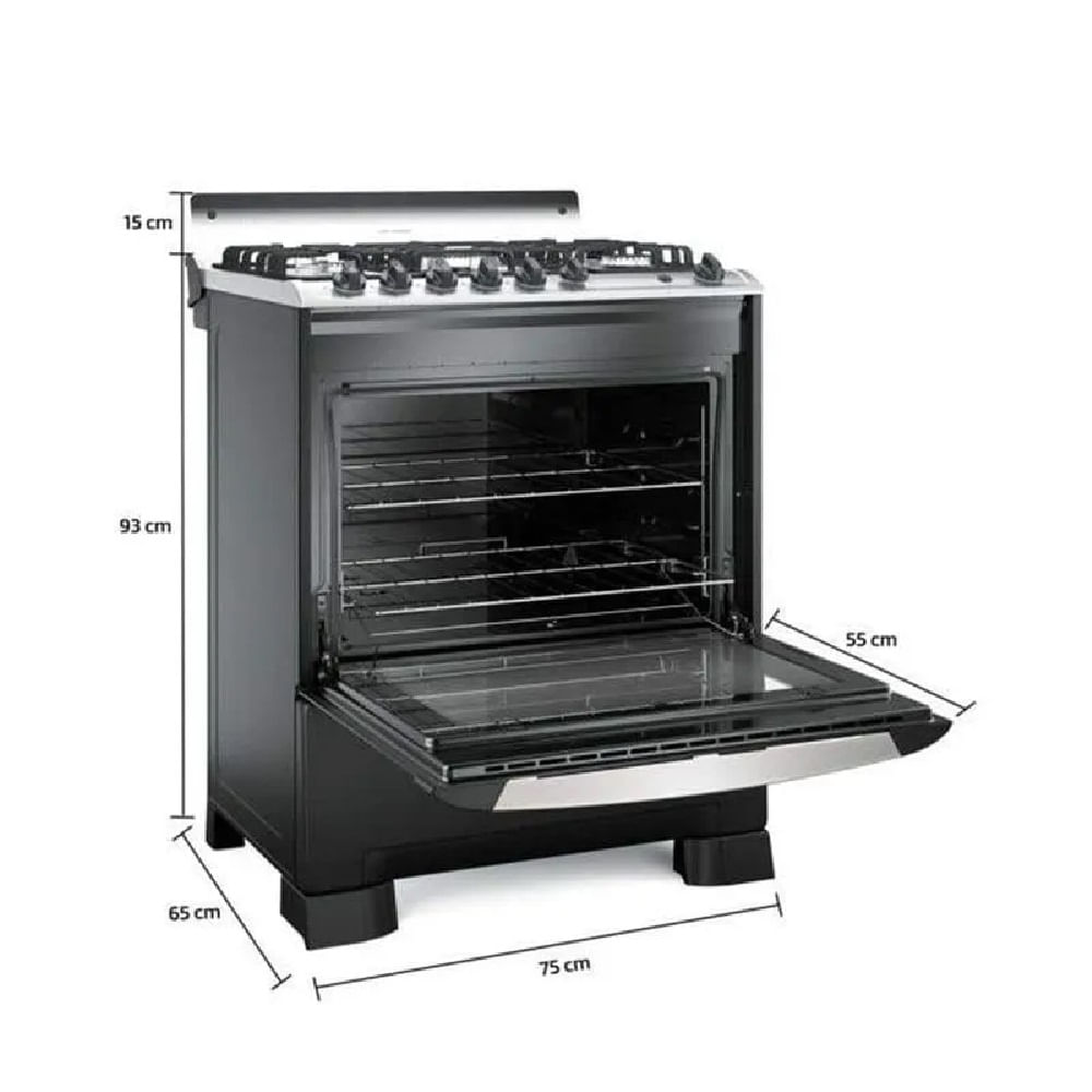 Fogão de Piso Mueller 5 bocas Preto Fosco Decorato Gourmet – Bivolt