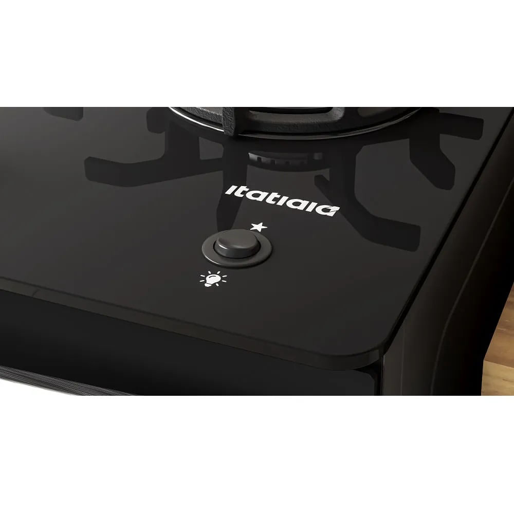 O Fogão Itatiaia 4 Bocas Itaglass Plus Preto oferece facilidade na limpeza e mais segurança com a mesa de vidro temperado, que é resistente e fácil de higienizar.