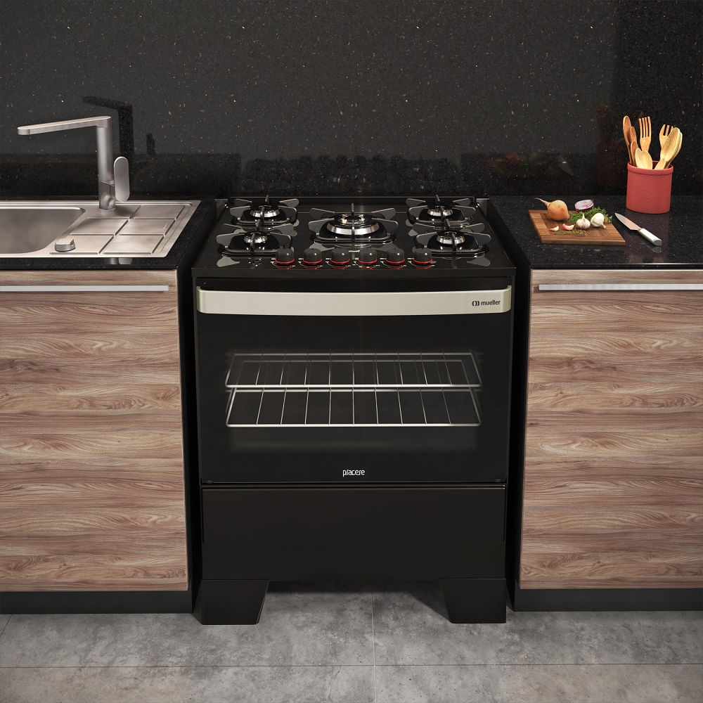 Fogão Mueller 5 Bocas Piacere Vetro Preto Fosco – Bivolt