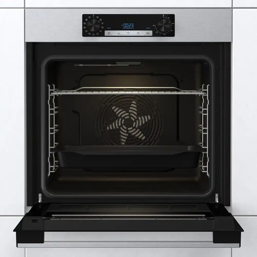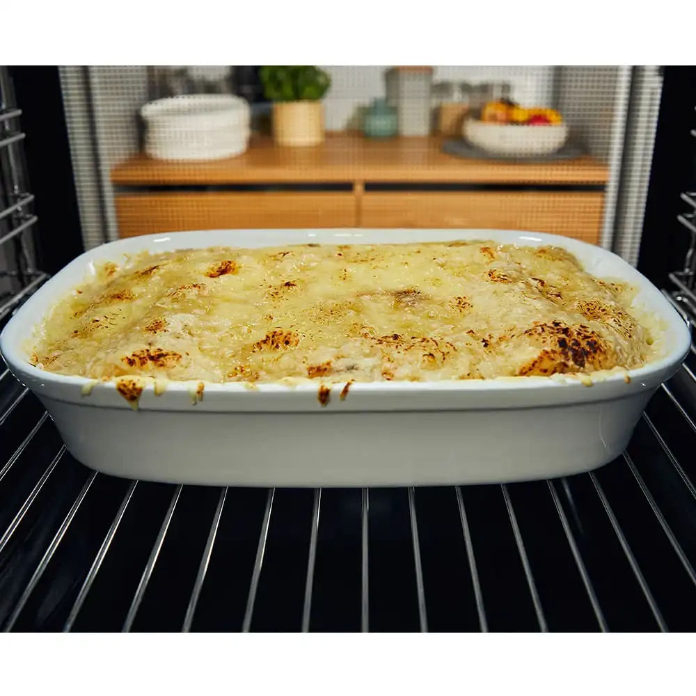 Com o Forno Elétrico de Embutir Hisense 77 Litros Preto e Inox – 220 Volts tudo o que você coloca é cozido uniformemente graças à grande cavidade ligeiramente arredondada que, juntamente com aquecedores especiais posicionados de forma inteligente, permite uma distribuição de ar quente excelente e uniforme. Ou seja, crocante por fora e suculento por dentro. A grande porta de vidro e a excelente iluminação interna permitem que você verifique sua comida a qualquer momento sem abrir a porta e deixar sair o ar quente.