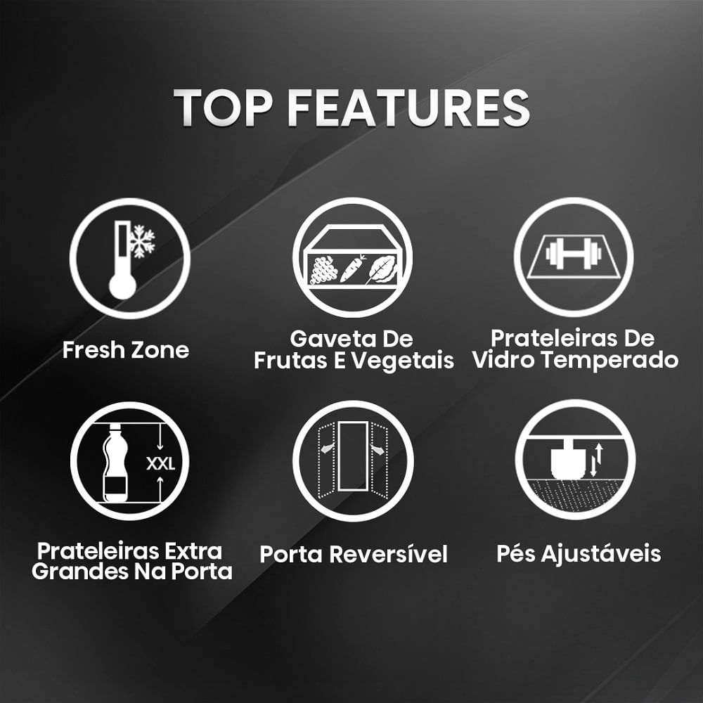Resfriamento Extra e Congelador Independente: Precisa conservar congelados ou manter suas bebidas na temperatura ideal? O compartimento de resfriamento extra e o congelador independente garantem tudo isso com muita eficiência.