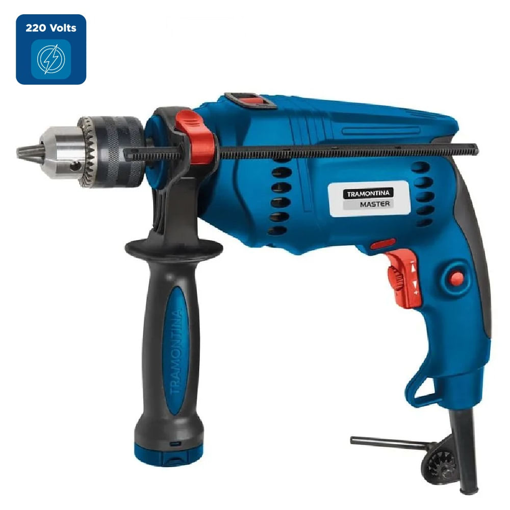 Furadeira de Impacto Tramontina para Uso Profissional com Empunhadura Auxiliar Velocidade Variável e Sistema de Reversão Azul – 220 Volts