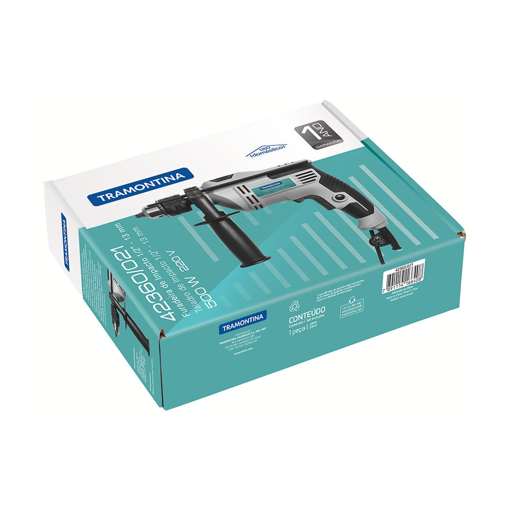 De tempos em tempos, algo precisa ser instalado ou reparado em casa, certo? Por isso, você precisa ter à mão a Furadeira de Impacto Tramontina 500 W 220 V 1/2 Polegada com Empunhadura Auxiliar e Sistema de Reversão, item indispensável para o seu kit de ferramentas. Ela é projetada para perfurar madeira, metal e concreto, possui botão seletor de sentido de rotação, trava de gatilho e dois modos: com e sem impacto.