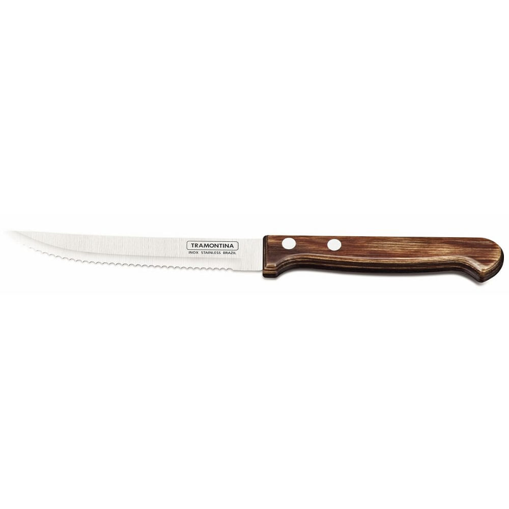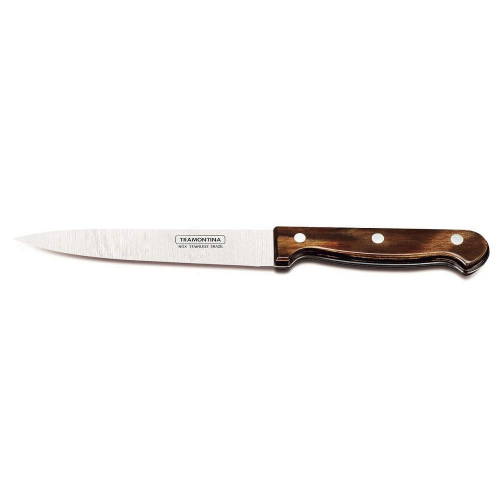 Jogo de Facas Tramontina 6 Peças Polywood com Lâminas em Aço Inox e Cabos de Madeira Castanho com Suporte de Madeira