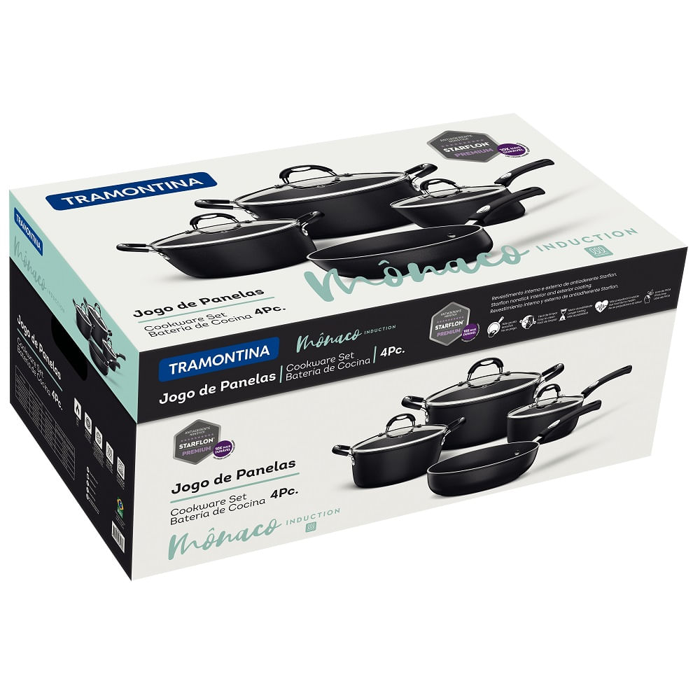 Jogo de Panelas Tramontina 4 Peças Mônaco Induction em Alumínio com Revestimento Antiaderente Starflon Premium Preto