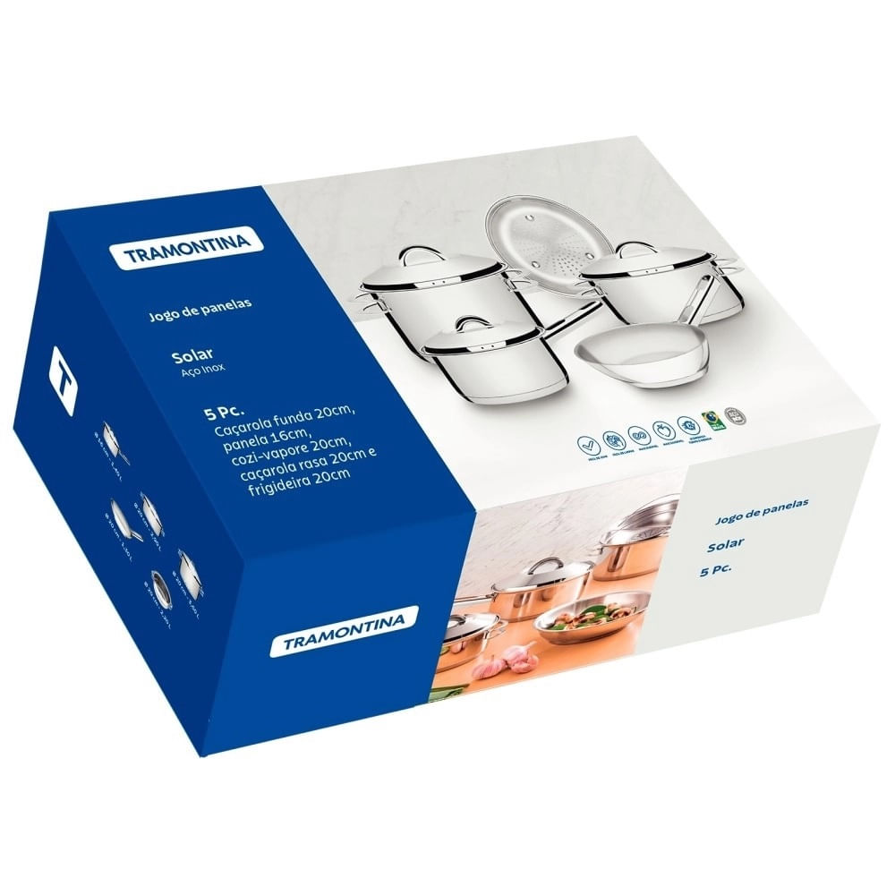 Jogo de Panelas Tramontina Solar 5 Peças em Aço Inox com Fundo Triplo