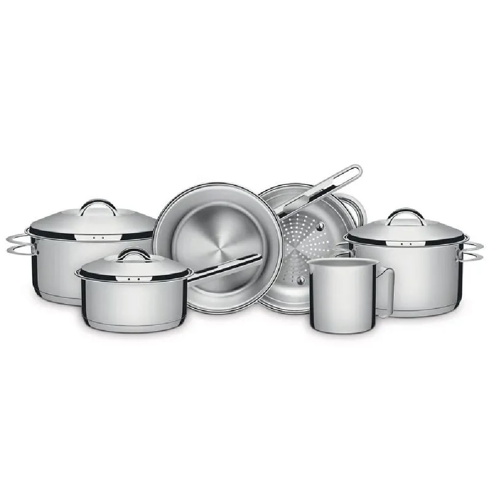 Jogo de Panelas Tramontina Solar 6 Peças em Aço Inox com Fundo Triplo fácil de usar: uma panela prática para todas as suas receitas e que faz bonito em qualquer tipo de fogão: gás, elétrico, vitrocerâmico e indução. ainda possui tampa com saída de vapor e encaixe perfeito. o fervedor não é indicado para o fogão à indução.