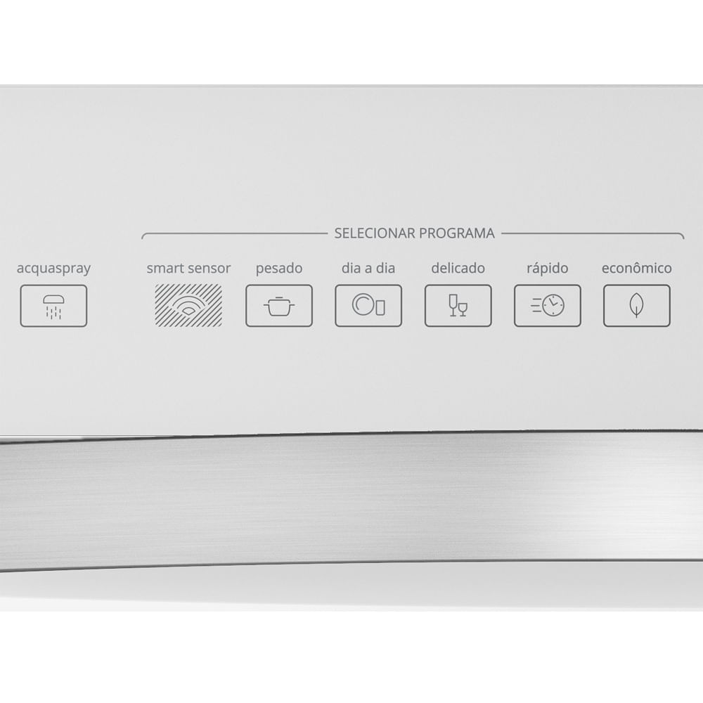 Com a função Acqua Spray, você pode acumular a louça e lavar de uma só vez. Isso porque ela libera jatos de água, fazendo uma pré-lavagem que remove a sujeira e evita odores.