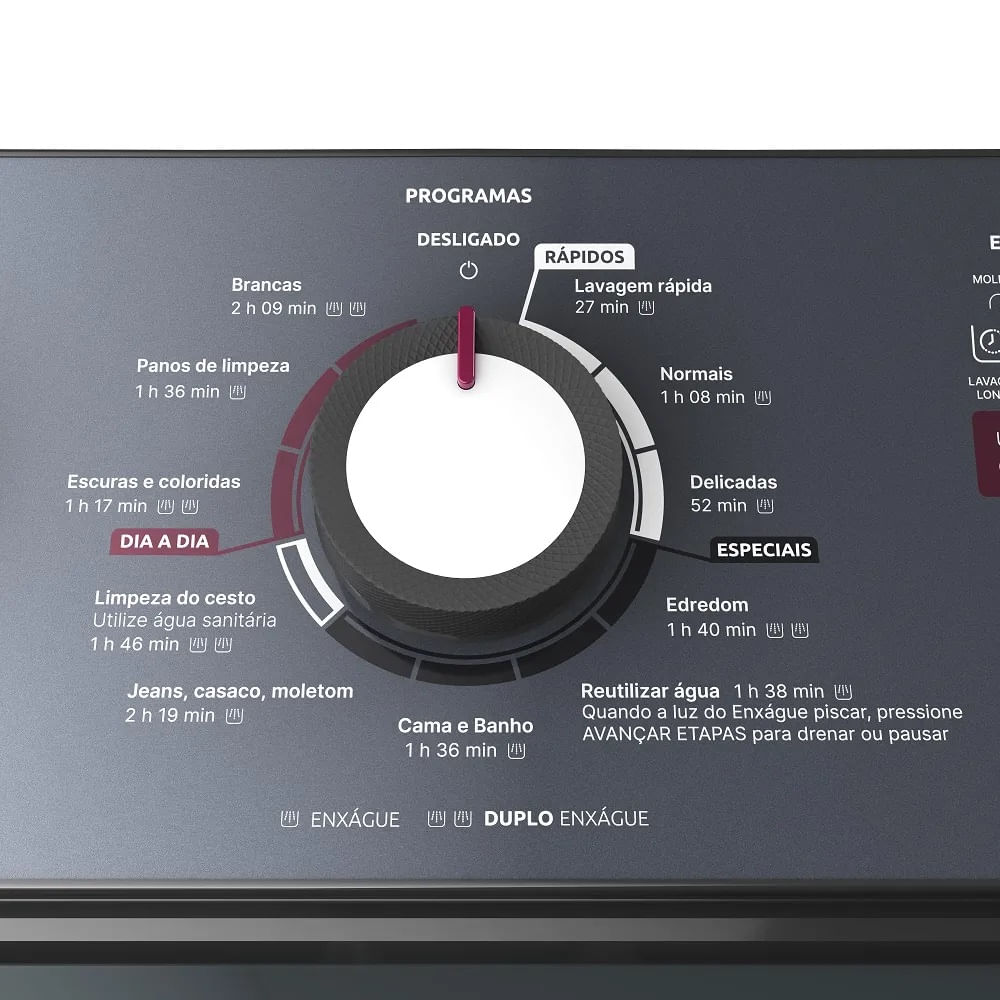 Incluindo ciclo de lavagem rápida, com roupas limpas em até 27 minutos.