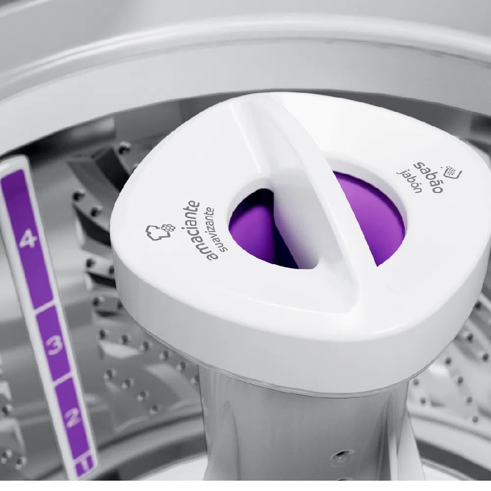 Sabão e amaciante entram em contato com as roupas no momento certo, evitando manchas.