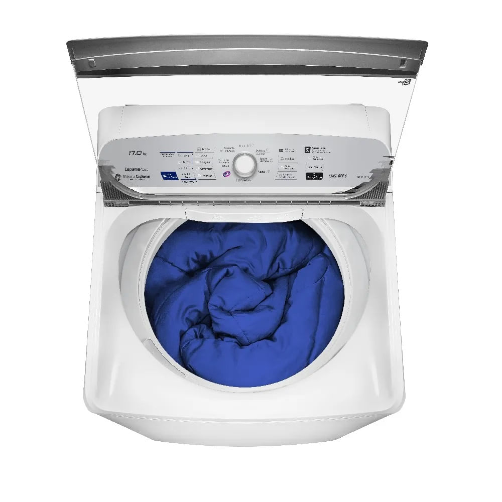A Lavadora de Roupas Panasonic 17Kg Branca NAF170B7WA – 127 Volts Possui um maior espaço interno e remove as manchas mais difíceis, pois conta com o Sistema Ciclone e não necessita de um agitador. Por isso é a única que alcança nota 1,0 no teste de eficiência.