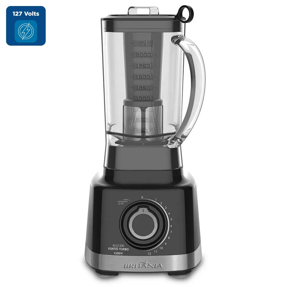Liquidificador Britania 1400W 3 Litros 12 Velocidades + Pulsar Fortis Turbo Preto BLQ1300P – 127 Volts