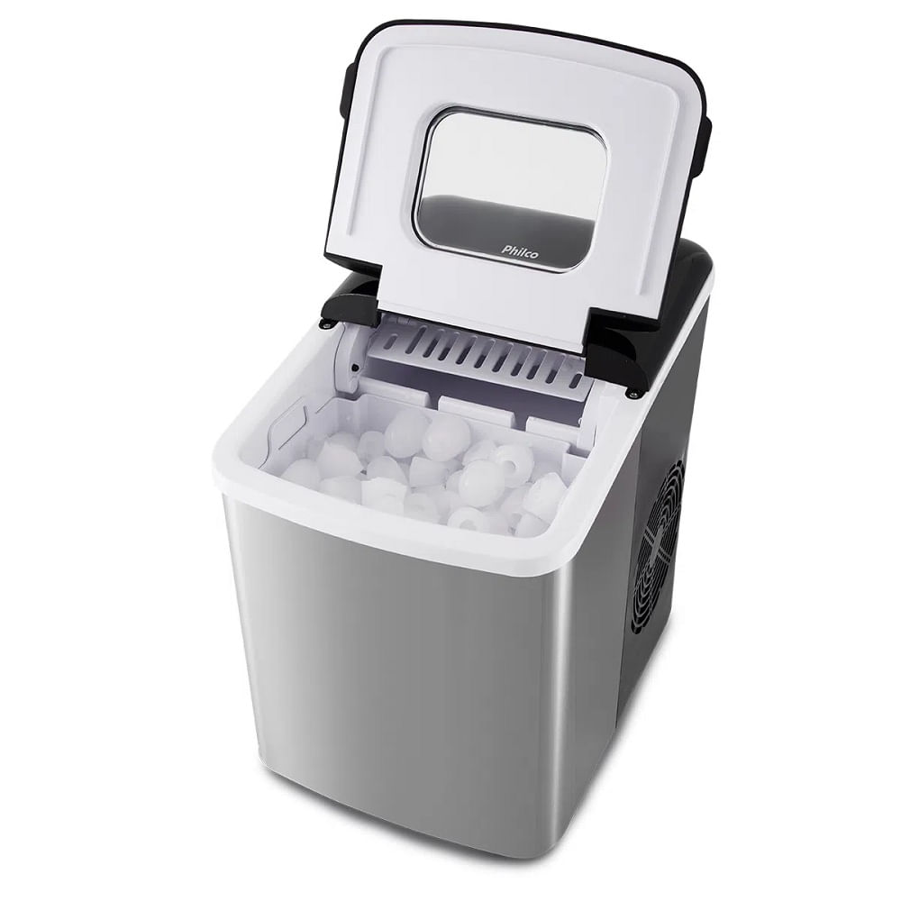 O painel luminoso é super prático e fácil de programar. Capacidade do reservatório de gelo de 800g, perfeita para reuniões em família e com amigos. Prático reservatório de água, com capacidade total de 1,85 litro, com indicador no painel que avisa quando a água acaba. Design de janela visível, você não precisa abrir a tampa para ver os cubos de gelo.
