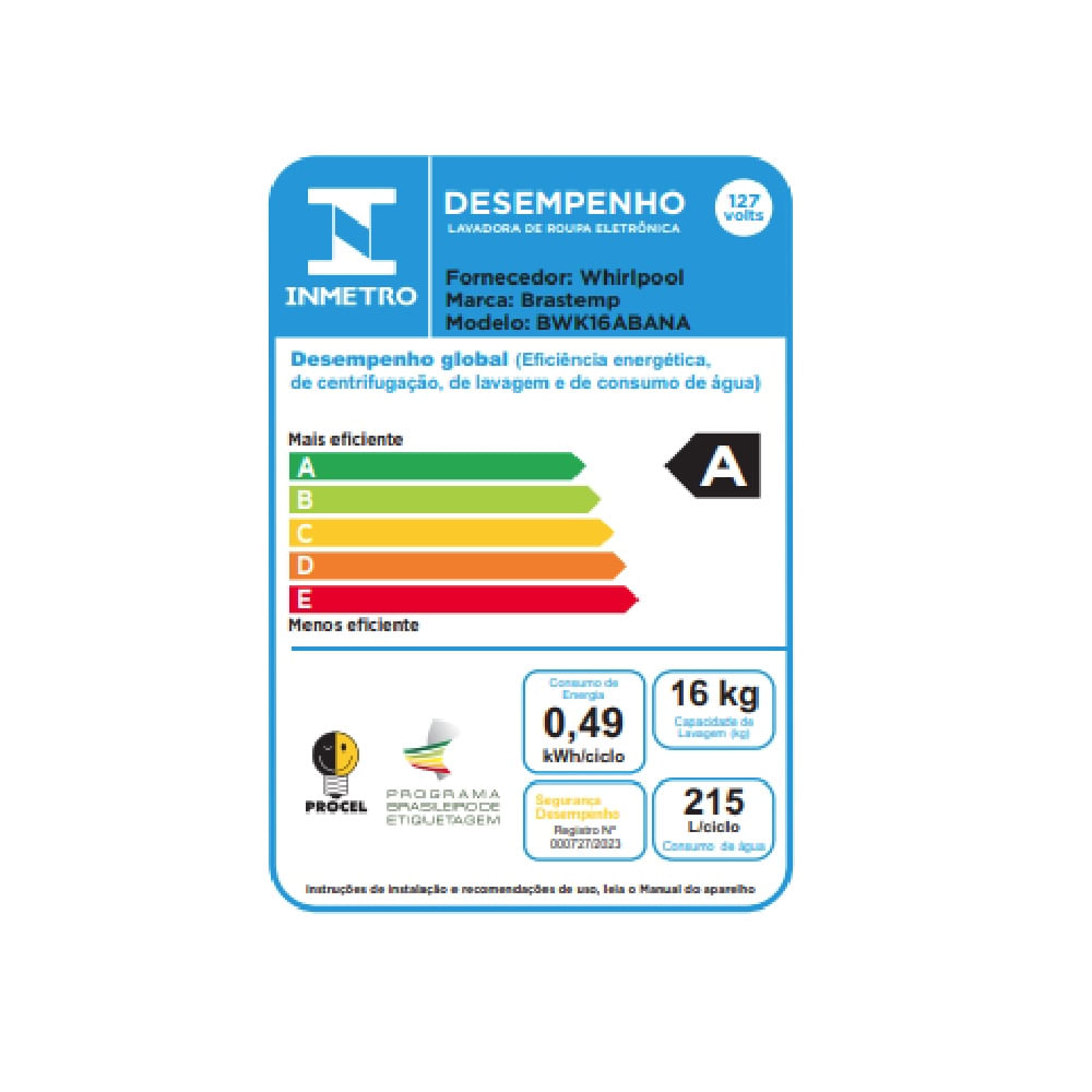 Máquina de Lavar Brastemp 16Kg com Ciclo Tira Manchas Branco BWK16ABANA – 127 Volts