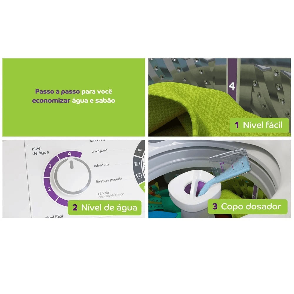 A nova Máquina de Lavar Consul 12kg conta com a Dosagem Econômica que permite a economia de até 70% de sabão, com o exclusivo Copo Dosador, com a praticidade da Régua de Nível Fácil e é a lavadora mais compacta do segmento com Ciclo Edredom.