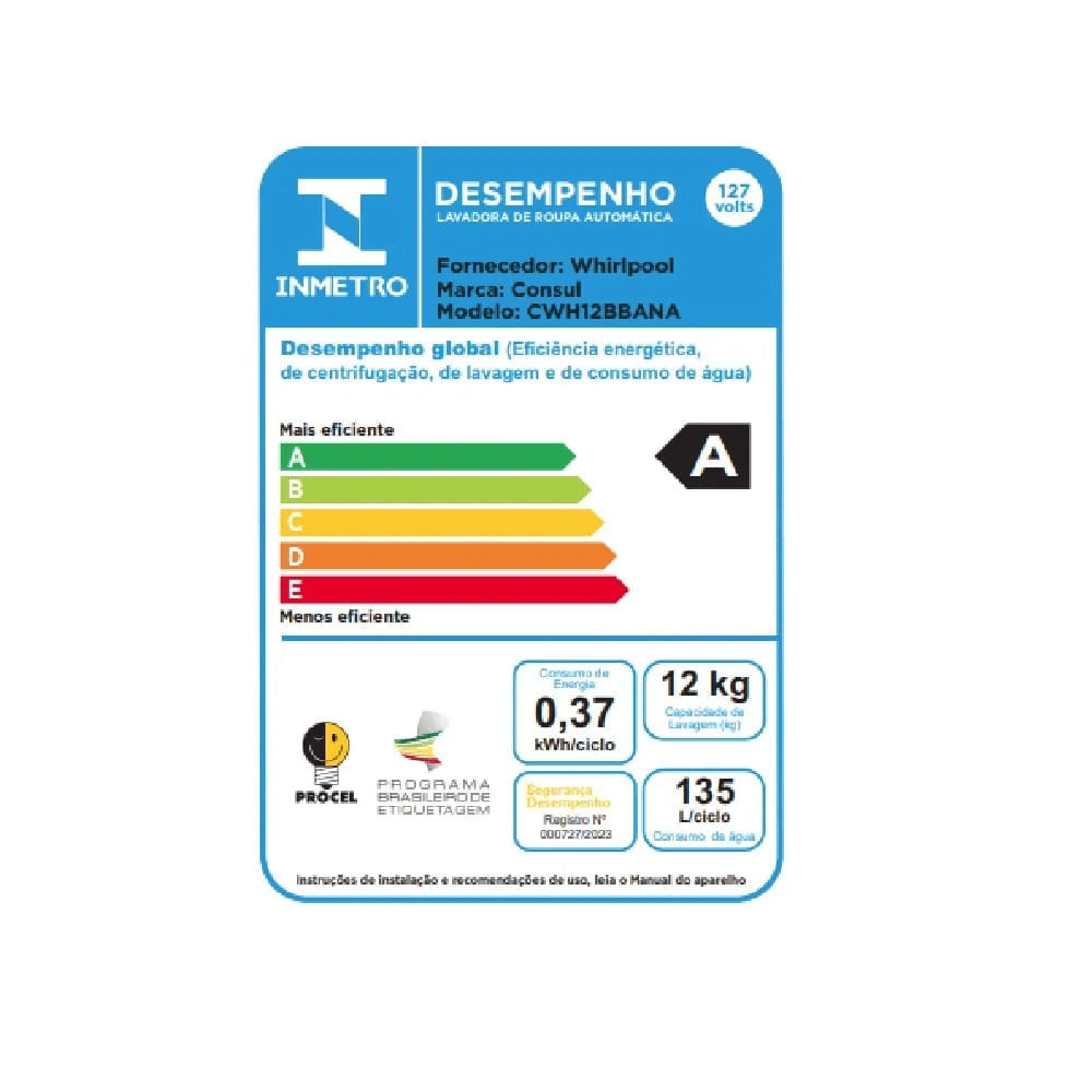 Máquina de Lavar Consul 12 kg com Dosagem Econômica e Ciclo Edredom Branca CWH12BB – 220 Volts