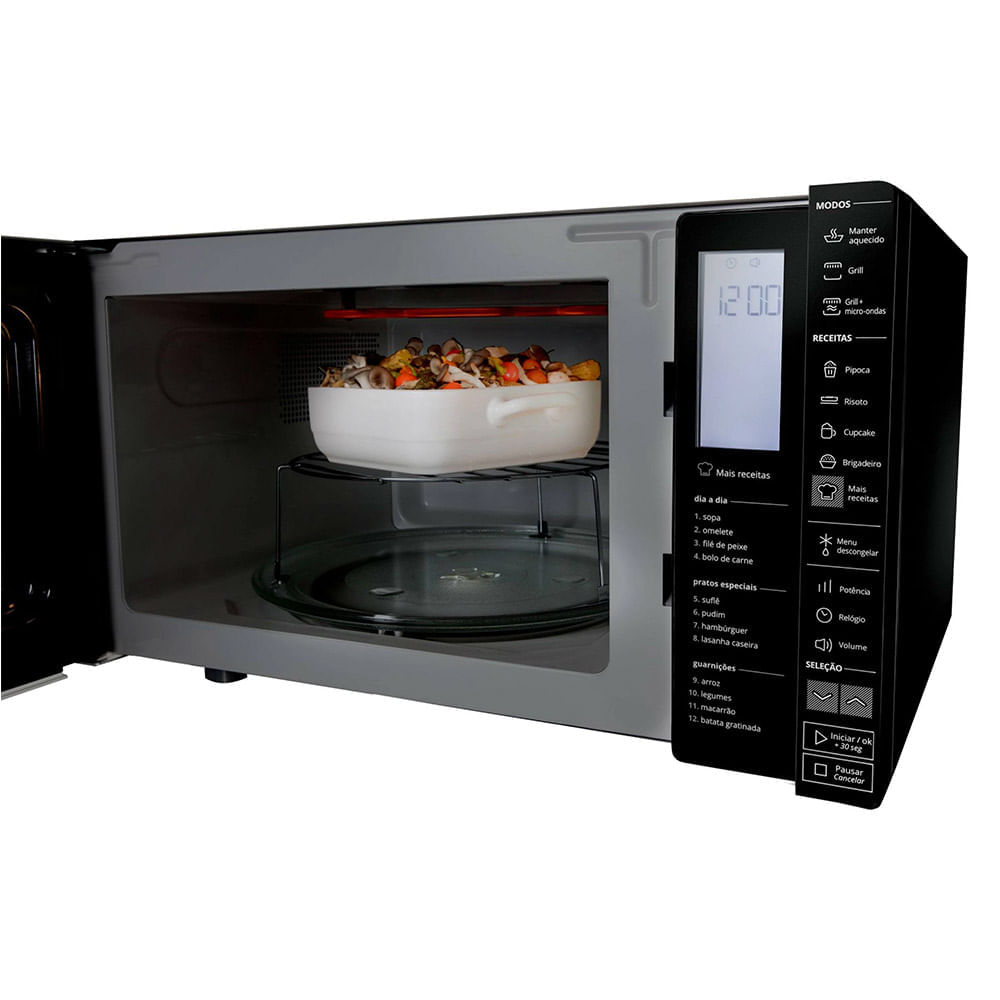 Experimente a performance em cada detalhe. O Micro-ondas Brastemp 32 Litros com Grill e Painel Integrado Preto BMG45AE com Grill trazem novas possibilidades à sua cozinha. O Painel LCD Integrado e Design Espelhado adicionam modernidade e sofisticação. Já a função Manter Aquecido garante que seus pratos estejam na temperatura ideal no momento de servir. E para finalizar de forma impecável, a combinação Grill e Micro-ondas permite cozinhar e dourar os alimentos com uma única função.